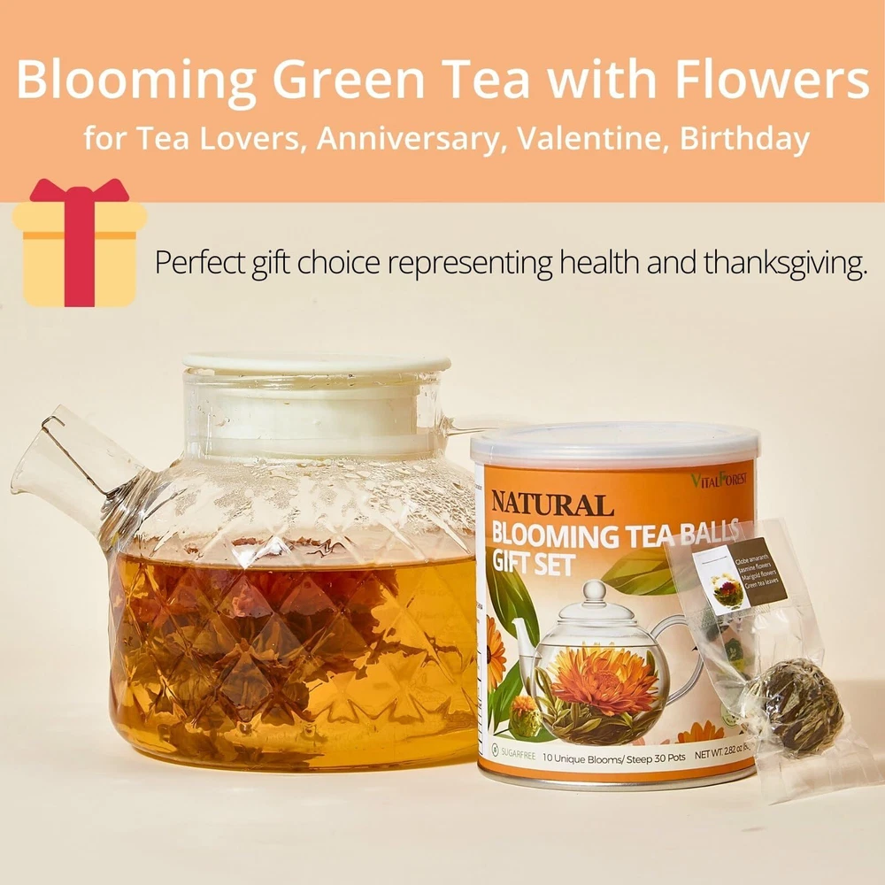 Blooming Tea Gift Set, 10 Unique Varieties Flowering Tea Balls, VitalForest Individual Packing Handmade Blooming Flower Tea, Blooming Green Tea with Flowers for Tea Lovers, Anniversary, Valentine, Birthday 【Handmade Blooming Tea Flowers】-- Handpicked Ingredients, Natural Green Tea Leaves & Edible Flowers. Great product if you like something unique and unusual. 【10 Variety Individually Wrapped Blooming Tea Balls】-- Green Tea with Natural Rose Flowers Chamomile Jasmine Flowering Tea. Made up with green tea leaves carefully handcrafted into ball shape and tied up with an edible flower in the centre 【Unique Gift Idea】-- The flowering tea gift set packaging make it a nice present for Christmas birthday anniversary valentine for tea lovers,especially fun for girls to see a blooming flower tea. 【Fascinating to Watch】-- Special tea flowers for brewing, bloomed beautifully give a decent presentation, easy feeling when enjoy watching the flower open. As they sit in the pot and continue to open out like a mini lotus flower. 【Idea for Glass Teapots】-- You need a glass teapot to appreciate the delicate visual effect. These bloom tea work best with a blooming tea pot. One tea ball per pot works rather well and allows for a beautiful display. 【To make sure Get Full Bloom】-- take your good size tea pot and fill it to enough boiling water, drop bloom ball in and wait 5-10 minutes. Be patient, some are faster than others. 【Mild Teast】-- These flowers teas are supposed to be mild. They are natural green teas with flowers, but if you want a stronger flavor, suggest leaving them to steep longer. A small dab of honey also works well if you prefer some sweetness. [ Love It or We Buy It ]: We believe you shouldn’t pay for products you don’t love. If you’re not enjoying our floral tea, let us know and we’ll refund your order—simple as that! Shipping We offer FREE shipping on all orders! We ship within Three business days of payment, usually sooner. We use a selection of shipping services such as UPS, FedEx, USPS etc. We only ship to the lower 48 states, no APO/FPO addresses or PO Boxes allowed. Local pickups and combined shipping options are not provided at this time. Return You can return a product for up to 30 days from the date you purchased it ONLY if it's in the original condition. The product cannot be used or open. Any product you return must be in the exact same condition you received it and in the original packaging. Please keep the receipt. Feedback Customer satisfaction is very important to us. If you have any problem with your order, please contact us and we will do our best to make you satisfied. Contact Us If you have any queries, please contact us via ebay. We usually respond within 24 hours on weekdays. Please visit our eBay store to check out other items for sale! Thank you for shopping at our store.