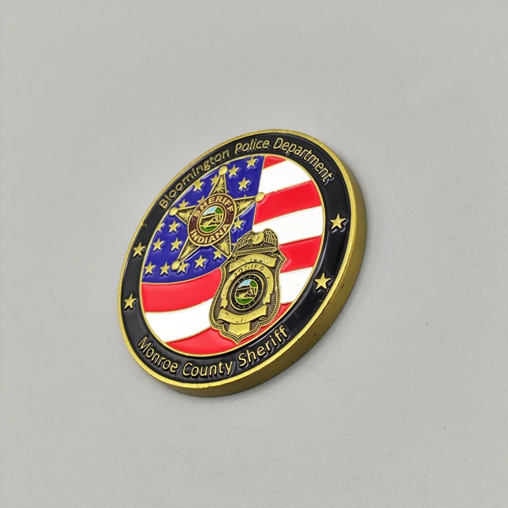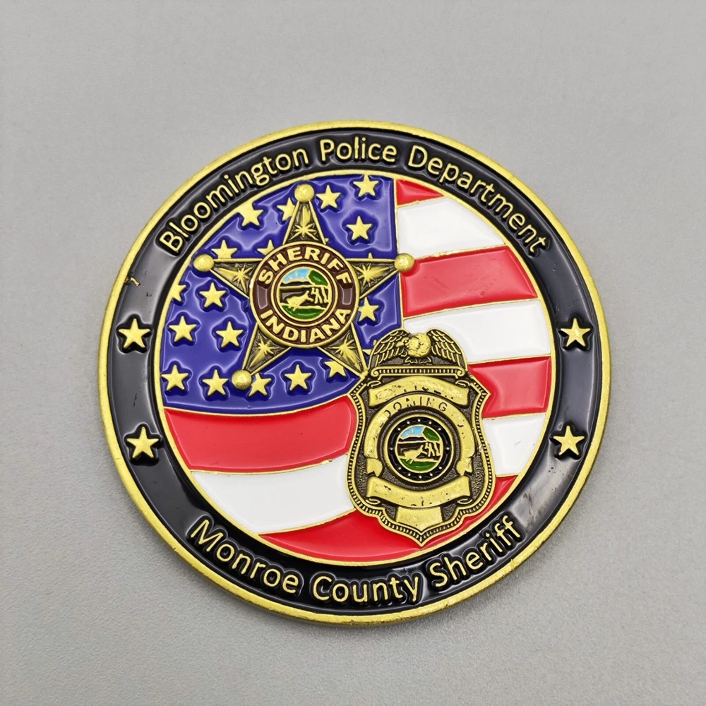 TITLE-- Bloomington Police Department Monroe County Sheriff Challenge Coin SIZE-- Measures approx. 1.75 inches Used coins have imperfections, please see pictures SHIPPING -- Ships within 5 days of receiving payment. Your purchase will be carefully packaged and you can always check tracking information on eBay Purchase two and more and get a discount on shipping SERVICES -- If you have any questions, you can contact us at any time, we will reply you as soon as possible to solve your problem If you are not satisfied with your purchase for any reason, please contact us before leaving neutral or negative feedback, we will solve the problem for you properly