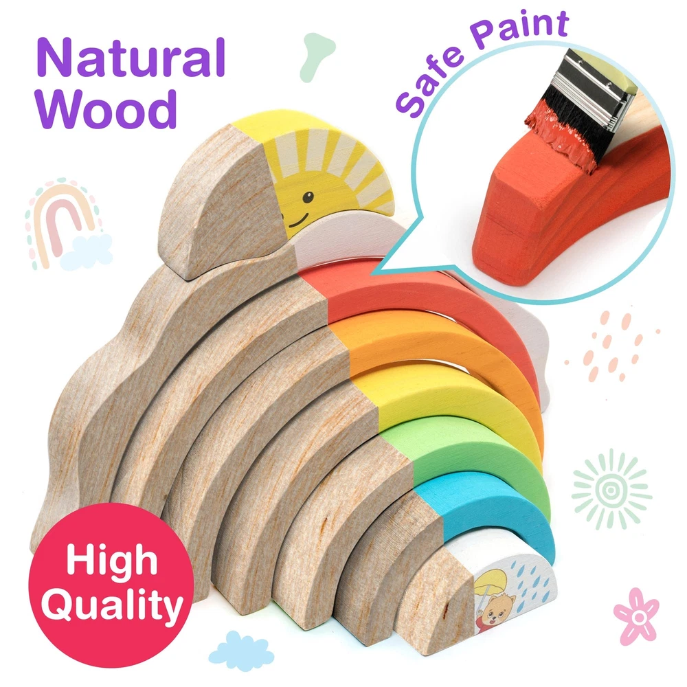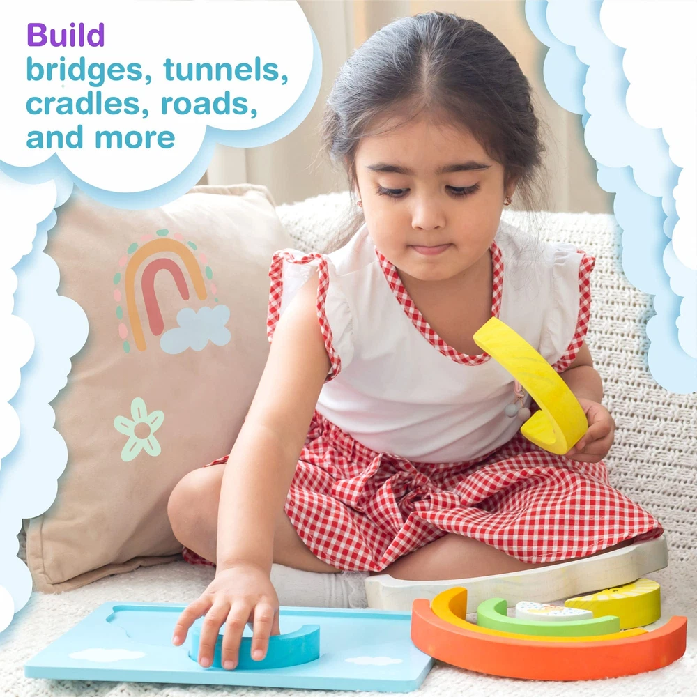 Bimi Boo Natural Wooden Rainbow Blocks for Toddlers 2 Year Old and Up - Stacker Toy for Kids - Color and Sorting Learning - Gender Neutral Gifts - Storage Board 6 Colored Arcs & Storage Board - The wooden rainbow has 6 different colored arcs that can be stacked on top of each other. A lightweight storage board comes additionally to keep all pieces secure. Quality And Safety - Our products are made from the highest-quality solid wood and safe non-toxic paints. Each piece is hand-polished and has no sharp edges. This product is certified in both the USA and Europe. Critical Thinking Skills - Kids can use it as a balancer, building blocks, stacker, or find various uses for pretend play.This wooden Montessori boho toys improve patience, hand-eye coordination, fine motor skills, and problem-solving skills in a fun way. Perfect Toddler Gift- It is the perfect occupational therapy baby gifts. Build bridges, tunnels, cradles, roads, and more with the Bimi Boo stacking rainbow today. Practical gifts for 1 year old. Room Decor - The wooden stacking toy comes with a convenient storage board, colored in the sky color with clouds. The wooden stacking rainbow has an attractive design that will brighten any room. Rainbow classroom decor. 6 Colored Arcs & Storage Board - The wooden rainbow has 6 different colored arcs that can be stacked on top of each other. A lightweight storage board comes additionally to keep all pieces secure. Quality And Safety - Our products are made from the highest-quality solid wood and safe non-toxic paints. Each piece is hand-polished and has no sharp edges. This product is certified in both the USA and Europe. Critical Thinking Skills - Kids can use it as a balancer, building blocks, stacker, or find various uses for pretend play.This wooden Montessori boho toys improve patience, hand-eye coordination, fine motor skills, and problem-solving skills in a fun way. Perfect Toddler Gift- It is the perfect occupational therapy baby gifts. Build bridges, tunnels, cradles, roads, and more with the Bimi Boo stacking rainbow today. Practical gifts for 1 year old. Room Decor - The wooden stacking toy comes with a convenient storage board, colored in the sky color with clouds. The wooden stacking rainbow has an attractive design that will brighten any room. Rainbow classroom decor. Shipping from the USA All of our products are shipped from the USA, ensuring quick delivery to your destination. Payment We offer the following payment methods: PayPal, credit card, bank transfer, and eBay's secure payment system. Free Shipping & Free Returns Shipping within the USA is FREE. Additionally, any return is absolutely free for you. Risk-Free Purchase You have the option to return an item within 30 days without any justification. We cover the return shipping costs! Fast Shipping We ship immediately upon receipt of payment. Generally, the package is delivered within 2-3 days in the USA. If it takes longer, we will contact you. Quality and Costs Made in Europe, USA, China No customs fees or additional charges Total satisfaction guarantee Invoice with declared VAT available upon request in .pdf format Feedback Your feedback is very important to us. After you pay for your purchase, you will automatically receive positive feedback from us.