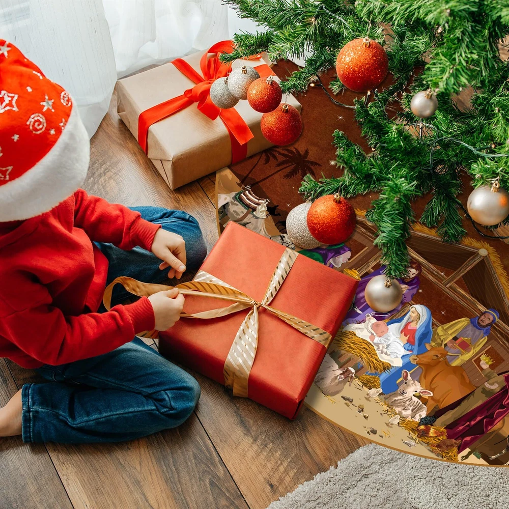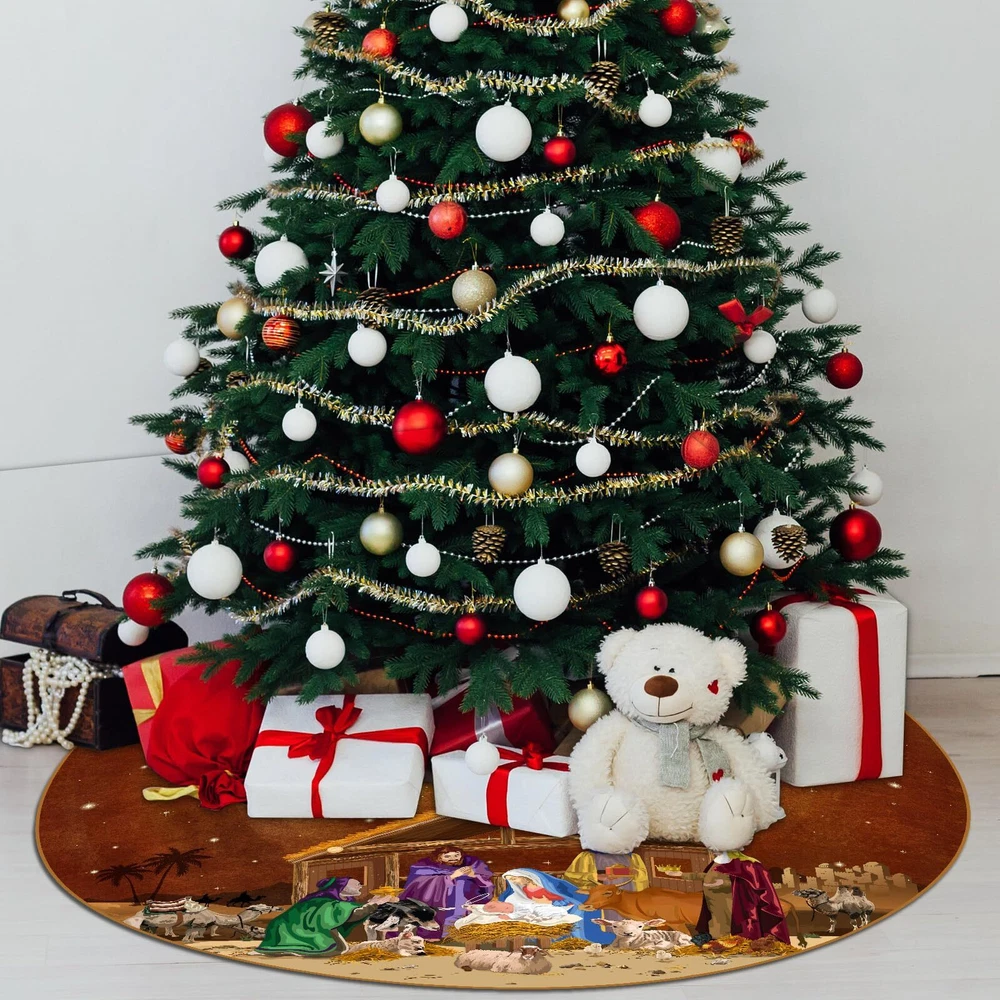 Blosssound Christmas Nativity Tree Skirt 48 Inch Nativity Scene Christmas Tree Mat Jesus Christian Winter Holiday Party Decor Farmhouse Tree Ornaments Xmas Indoor Outdoor Supplies(Brown) Nativity Scene: the theme of our religious tree mat is the birth of Jesus; On the Xmas tree mat there are shepherds, the Virgin Mary, Jesus, king, a wooden house, buffaloes, camels, lambs, etc.; Which showing the scene of Jesus' birth vividly Right Size: measuring 48 inches in diameter, this Christmas tree skirt is the ideal size for most Christmas trees; Just place it around the base of your tree, then put some Christmas decorations on it, and watch as it instantly elevates your holiday decor Quality Materials: our nativity tree skirt is made of polyester, soft and durable, not easy to slide; The patterns are exquisite and clearly printed; Not only does it protect the floors from pine needles and tree sap, but also adds warmth to your home Easy to Use: our Jesus Christmas tree decor adopts rope straps design, which can be firmly fixed by just simply fasten, and it is very convenient to install; Simply make your home merry and bright with this beautiful and festive tree skirt Christmas Decorations: complete your merry Christmas celebrations with this Xmas tree skirt; Whether you're hosting a merry Christmas family party or simply want to create a cozy atmosphere in your home, this tree skirt is sure to impress your guests Features: Creative Christmas decoration: Our Jesus Christian themed Christmas tree skirt is to express our celebration and commemoration of the birth of Jesus, making your Christmas decoration more special, unique and memorable. Good choice for gifts: The Xmas tree decor is beautifully printed and well-made. You can give it to your friends, family, lovers, neighbors, etc. Those who receive this Christmas gift will be very happy and fell your care and love. Specifications: Material: polyester Color: brown Size: 48 inch Package Include: 1 x brown Christmas tree skirt Notes: Manual measurement, there may be slight differences in size. Due to the screen display, the color of the item may differ slightly from the picture. Shipping We offer FREE shipping on all orders! We ship within Three business days of payment, usually sooner. We use a selection of shipping services such as UPS, FedEx, USPS etc. We only ship to the lower 48 states, no APO/FPO addresses or PO Boxes allowed. Local pickups and combined shipping options are not provided at this time. Return You can return a product for up to 30 days from the date you purchased it. Any product you return must be in the same condition you received it and in the original packaging. Please keep the receipt. Payment We accept payment by any of the following methods: PayPal Please pay as soon as possible after winning an auction, as that will allow us to post your item to you sooner! Feedback Customer satisfaction is very important to us. If you have any problem with your order, please contact us and we will do our best to make you satisfied. Contact Us If you have any queries, please contact us via ebay. We usually respond within 24 hours on weekdays. Please visit our eBay store to check out other items for sale! Thank you for shopping at our store.