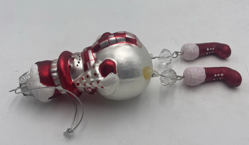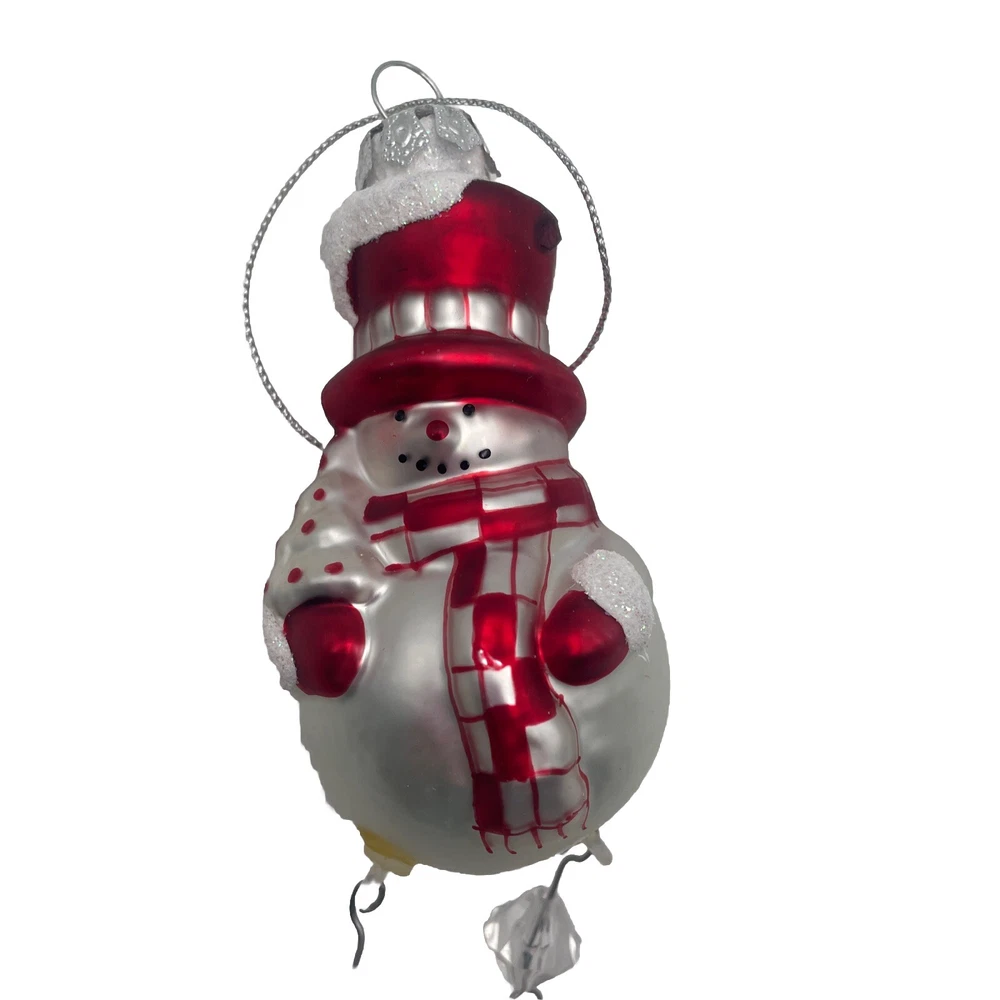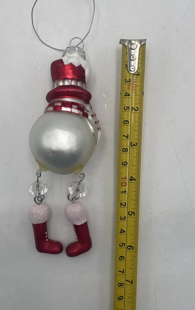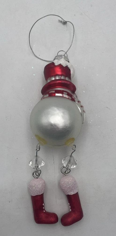 Add a festive touch to your Christmas tree with this Blow Mold Glass Snowman Ornament. Crafted with high-quality glass material, this vintage ornament features a jolly Santa and his dangling legs, perfect for adding a touch of holiday cheer to your home decor. This collectible ornament is a must-have for any ornament enthusiast and is sure to become a treasured addition to your collection. Whether you're looking to decorate your tree or add to your ornament collection, this Blow Mold Glass Snowman Ornament is the perfect choice. Out of box.