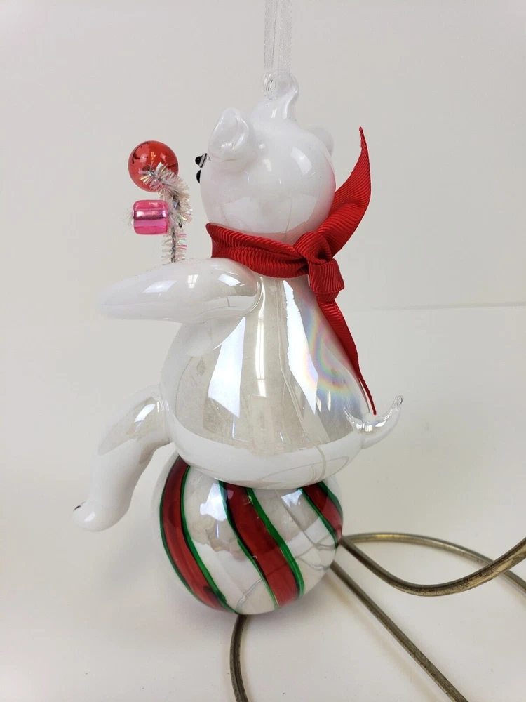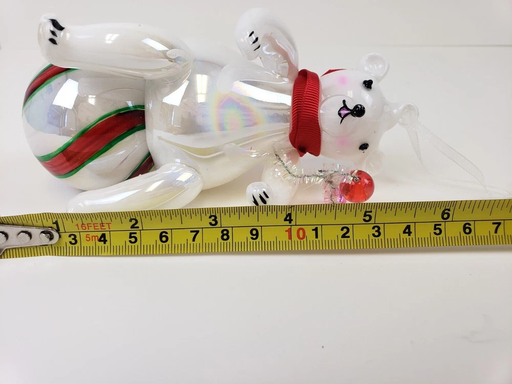 Beautiful large holiday ornament in excellent condition. Please see all pictures for condition, details and measurement. The hole in one of the feet is where the glass was blown. Listing and template services provided by inkFrog