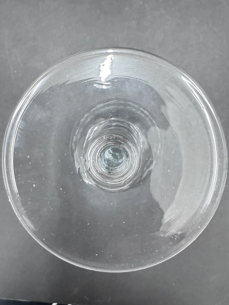 Set of four vintage clear glass water goblets featuring etched patterns of berries and leaves. Each goblet has a capacity of 6 ounces, a diameter of 3 3/8 inches, and a height of 7 1/8 inches. The goblets have an Art Nouveau style and are unmarked. They are recommended for hand wash only and are suitable for all occasions. Made of glass using blown glass production technique with cut glass details.