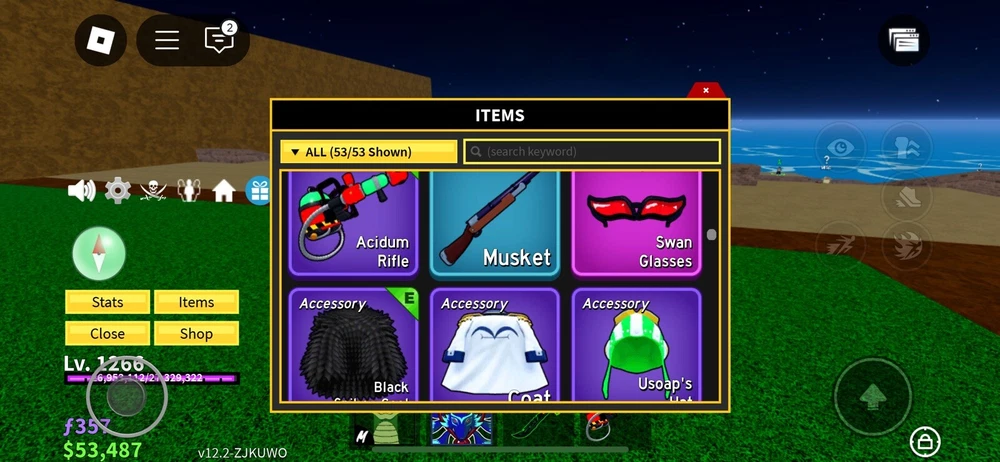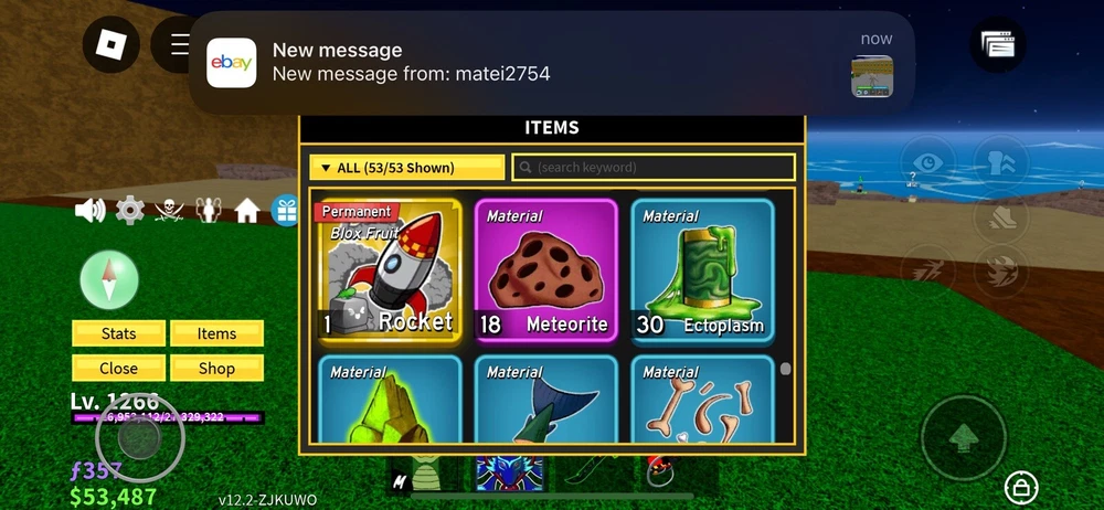 Blox Fruit Account with Perm Kitsune, Dough, Rocket & Dark Blade