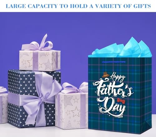 13 Inch Fathers Day Gift Bag with Tissue Paper for Dad