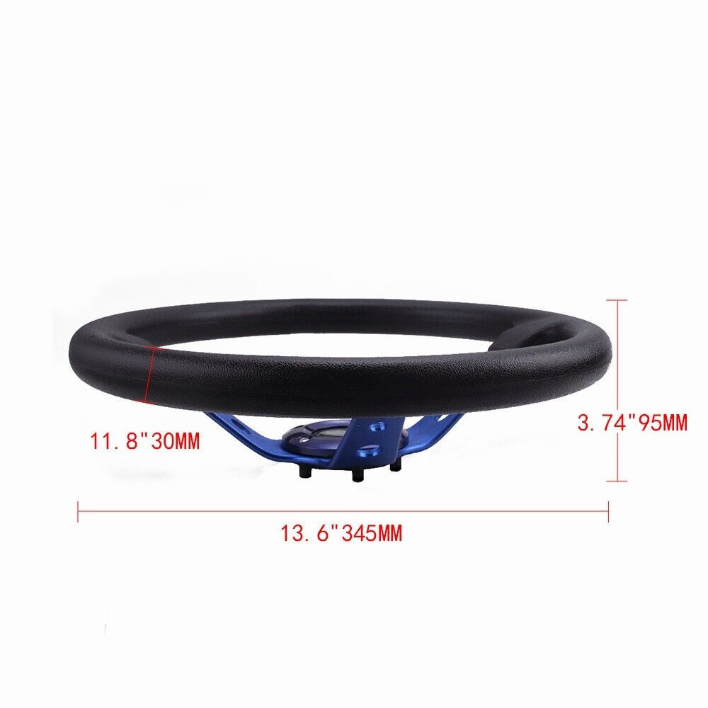 SPECIFICATIONS: 【Steering Wheel】 Diameter: 13.5 inches / 345mm 3.7inches / 95mm Deep Dished Light Weight & Durable Alloy Spoke Standard 6 Bolt fitment 【Quick Release Adapter】 Billet aluminum body, good bearing capacity, durable in using. With 6 long screws and 6 short screws for various snap off needs, ball-lock type mechanism for best locking fit and usability. Easy to operate, direct bolt-on, fast detach allows steering wheel to be removed quickly. Push-pin security feature prevents premature unlocking, with screw-driven tools for easy locking. Compatible with 6-hole steering wheel hub kit, designed for many aftermarket racing steering wheel. Package include only a steering wheel and a quick release adapter, must be installed with hub adapter (not include, need purchase separately). PACKAGE INCLUDED: 1 x Steering Wheel Kit 1 x Quick Release Adapter Kit All items are Brand New unless stated otherwise on the listing. We sell DIY (Do It Yourself) Items with a few exceptions. We take no responsibility in teaching you how to install. Professional installation is strongly recommended. Payment Delivery details Return Policy About us Contact us Payment We will only ship to eBay confirmed shipping addresses. It is buyer responsibility to provide correct shipping address before purchasing. Buyer is responsible for any reshipping cost due to wrong or undeliverable addresses. Delivery details Items are shipped within 1-2 business days of receiving payment verification. Domestic shipping fees are applied to the lower 48 Continental States only (AK, HI, GU, PR, VI, Base Addresses, may require additional shipping cost) Please e-mail us for a shipping quote. INTERNATIONAL shipping available through eBay's global shipping. But Buyer might pay some VAT and Duties; seller is no responsible with any VAT and Duties. Deliveries are generally done within 3-5 business days nationwide and 10-20 days worldwide. Damaged item due to shipping must reported to us within 48 hours of delivery in order to place claim with shipping company. Return Policy No returns or exchanges once item has been installed, used or modified. We will exchange the item only if is defective or if customer receive the wrong parts. Returns and/or exchanges must be done within 30 days from delivery date. All returns and/or exchanges must be in brand new/uninstalled condition. About us Always Free Shipping with your Parts orders. Lowest price on brand new, in-the-box auto parts. Business time is Monday - Saturday 8:30 am to 5:30 pm HKT except all Holidays. Contact us Always Free Shipping with your Parts orders. Lowest price on brand new, in-the-box auto parts. Business time is Monday - Saturday 8:30 am to 5:30 pm HKT except all Holidays.