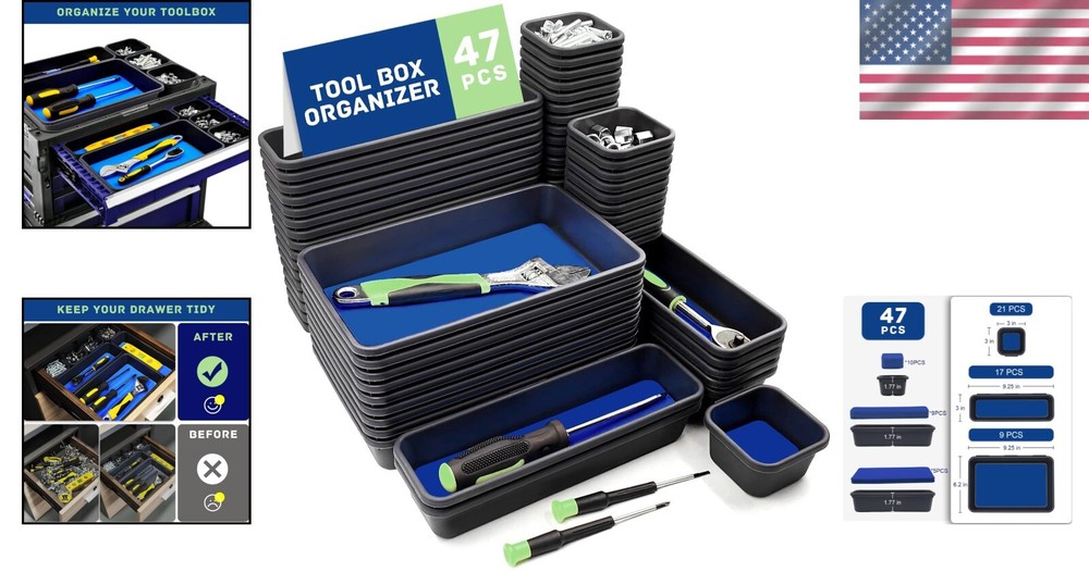 Tool Box Organizer Blue 47PCS Storage Tray Divider for Garage and Workshop ‹ › ‹ › ‹ › ‹ › ‹ › ‹ › ‹ › ‹ › ‹ › Tool Box Organizer Blue 47PCS Transform your garage and workshop into an efficient workspace with our versatile and elegant Tool Box Organizer. Designed for precision and convenience, this 47-piece storage tray divider set ensures that your tools are not only organized but also easily accessible. Features: 47 Pack in 3 Sizes: Includes 9 large trays (9.25 x 6.2 x 1.77 in), 17 medium trays (9.25 x 3 x 1.77 in), and 21 small trays (3 x 3 x 1.77 in), providing ample storage for all your tools. Durable & Sturdy: Crafted from high-quality plastic, our tool organizer is built to last and designed to resist deformation, ensuring longevity in use. Tool Organizers and Storage: Perfect for storing various tools including pliers, wrenches, screwdrivers, bolts, and small parts, keeping your workspace clean and orderly. Easy to Carry & Store: The interlocking design allows for easy transportation; use the trays separately or mix them together as per your needs. All dividers are removable for tailored storage options. Wide Use: Ideal for organizing your tool box, tool cabinet, or workbenches, fitting snugly into drawers of various shapes and sizes. Benefits: Create a clutter-free environment. Efficiently manage space within your tool box or chest. Customizable configurations to suit your personal requirements. Sturdy and reliable for long-term use. Enhances productivity by staying organized. Why choose our Tool Box Organizer? Say goodbye to messy workspaces and embrace the elegance of organization with our Tool Box Organizer. This thoughtfully designed set not only maximizes your storage capabilities but enhances the aesthetics of your working environment. With the ability to adapt to your varying storage needs, it’s the ideal solution for professionals and DIY enthusiasts alike. Invest in your workspace and experience the difference - order your Tool Box Organizer Blue 47PCS today! Shipping Free & Fast Shipping - We offer free shipping to most of the USA with a normal delivery time of 3-7 days. However, due to the current situation, additional delivery time (up to 3 weeks) may be required for some items. Alternative Carriers - We may use alternative carriers (e.g. USPS, FedEx, UPS, etc.) to ensure your package arrives safely and on time. Due to the use of multiple carriers, we are unable to provide a tracking number automatically. Handling Time - Orders are processed and shipped within 1-2 business days of receiving cleared payment. Shipping Restrictions - Shipping to Alaska, Hawaii, Puerto Rico, Guam, and other US territories may incur shipping charges or delivery restrictions. Please contact us before ordering, or your order can be refunded/cancelled. State Restrictions - There may be restrictions based on your state of purchase. For example, certain items may not be shipped to California due to state regulations. Contact for Tracking Updates - If you require tracking updates or have any concerns about the delivery of your order, please feel free to contact us, and we will be happy to assist you. Return 30-Day Hassle-Free Returns - We want you to be completely satisfied with your purchase. If you are not, you can return the item within 30 days of receiving it for a full refund or exchange. Easy Return Process - To start a return, simply contact us and we will provide you with a prepaid return shipping label and detailed instructions. Restocking Fee - There are no restocking fees for returns. However, the buyer is responsible for return shipping costs if the return is not due to a seller's error. Refund Processing Time - Refunds will be processed within 5 business days of receiving the returned item in its condition. Payment We accept all major credit cards, PayPal, and Apple Pay for your convenience. Your payment information is secure and encrypted to ensure a safe and seamless transaction. Please complete your payment within 3 days of purchase to avoid any delays in shipping. Feedback Your feedback is extremely important to us. We strive to provide the best products and customer service possible. If you are satisfied with your purchase, please take a moment to leave us a positive review. If you have any concerns or issues with your order, please contact us before leaving negative feedback. We are committed to resolving any problems and ensuring your satisfaction. Contact Us If you have any questions or concerns, please feel free to out to our customer support team. You can contact us through the eBay messaging system. We are available Monday to Friday, 9:00 am to 5:00 pm EST, and we will do our best to respond to your inquiry within 24 hours. Buy it now and enjoy a pleasant shopping experience! Item Width: Tool Organizer Item Length: Tool Organizer Item Height: Tool Organizer Item Diameter: 9.25 Item Weight: 1.75 kg Unit Quantity: 47 Features: Portable,Durable,Sturdy,Interlocking design,Removable dividers,Customizable storage Type: Tool Box Number of Items: 47 Material: Plastic Number of Drawers: 0 Size: Medium Color: Blue Finish: Glossy Unit Type: kg