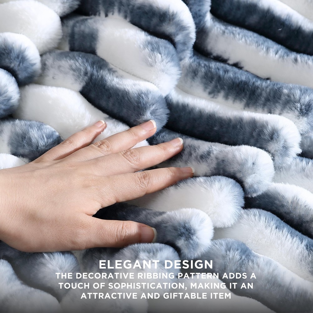 takes pride in offering products that stand the test of time. Our Printed Ribbed Faux Fur throw is no exception. Inspired by today's trends and global influences, it's a contemporary addition to your home. The 50"x60" size provides extra coverage, ensuring warmth and comfort. The decorative ribbing pattern adds a unique touch to your decor. Whether you're looking for a faux fur throw for your sofa or bed, this elegant and oversized blanket makes a statement. Luxurious Comfort: 's Printed Ribbed Faux Fur Throw is a plush and cozy addition to your home, offering both warmth and elegance Generously Sized: With its extra-large 50"x60" dimensions, this throw provides ample coverage, perfect for snuggling on the sofa or adding style to your bed Elegant Design: The decorative ribbing pattern adds a touch of sophistication, making it an attractive and giftable item Soft and Fluffy: Crafted with fluffy faux fur, this throw offers a warm and inviting experience that's perfect for the sofa or bed Versatile and Stylish: Whether as a faux fur bed throw, couch blanket, or a giftable item, this large and fluffy faux fur blanket elevates your living space Care Instructions: Machine wash cold separately on a gentle cycle, tumble dry low, do not iron, do not bleach