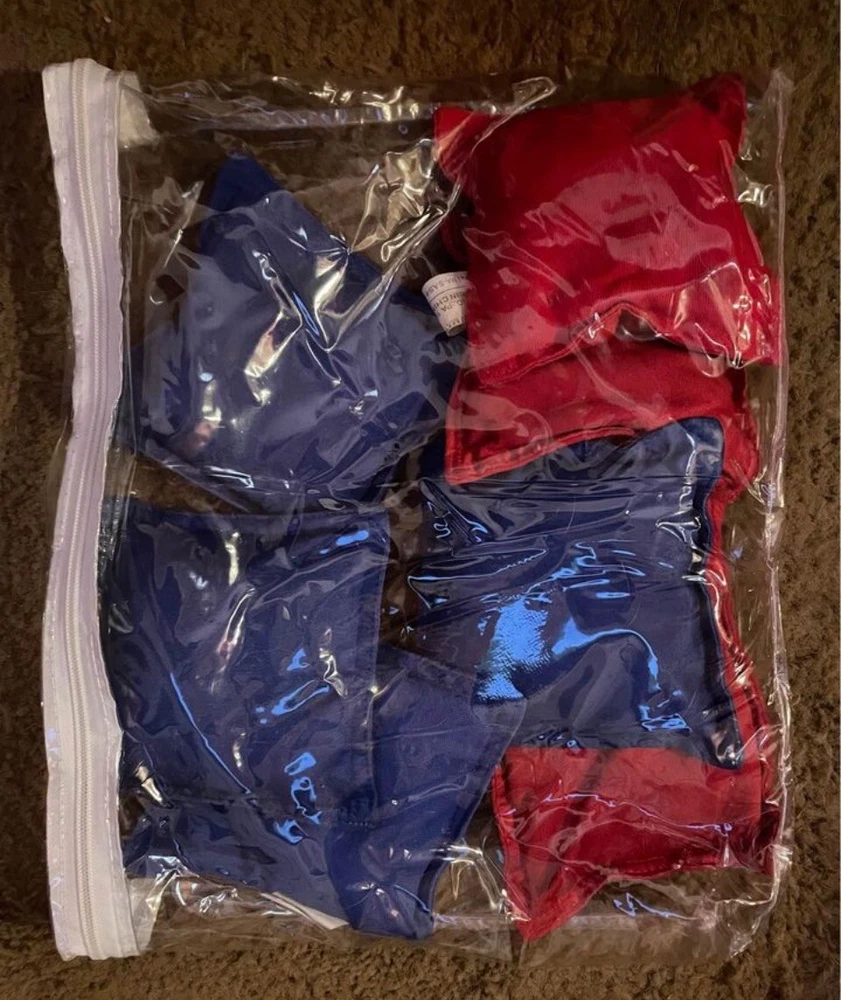 Enjoy hours of outdoor family fun with this set of 8 cornhole bag toss bags. The traditional red and blue colors add a pop of color to any backyard game night. Made in the United States, these bags are a must-have for any cornhole bag toss enthusiast. With free shipping it makes this an ever better deal. Having an extra set of bags never hurts because accidents always happen. One gets lost, damaged, the dog chews it up, and more, so snag these to keep the game going!!! The ACL Pro Set of 8 cornhole bags is perfect for both beginners and experienced players alike. With a total of 8 bags, you can keep the game going without interruption. These bags are durable and made to last, ensuring that you can enjoy countless hours of fun for years to come. Get ready for endless summer days of backyard games with this set of cornhole bag toss bags.