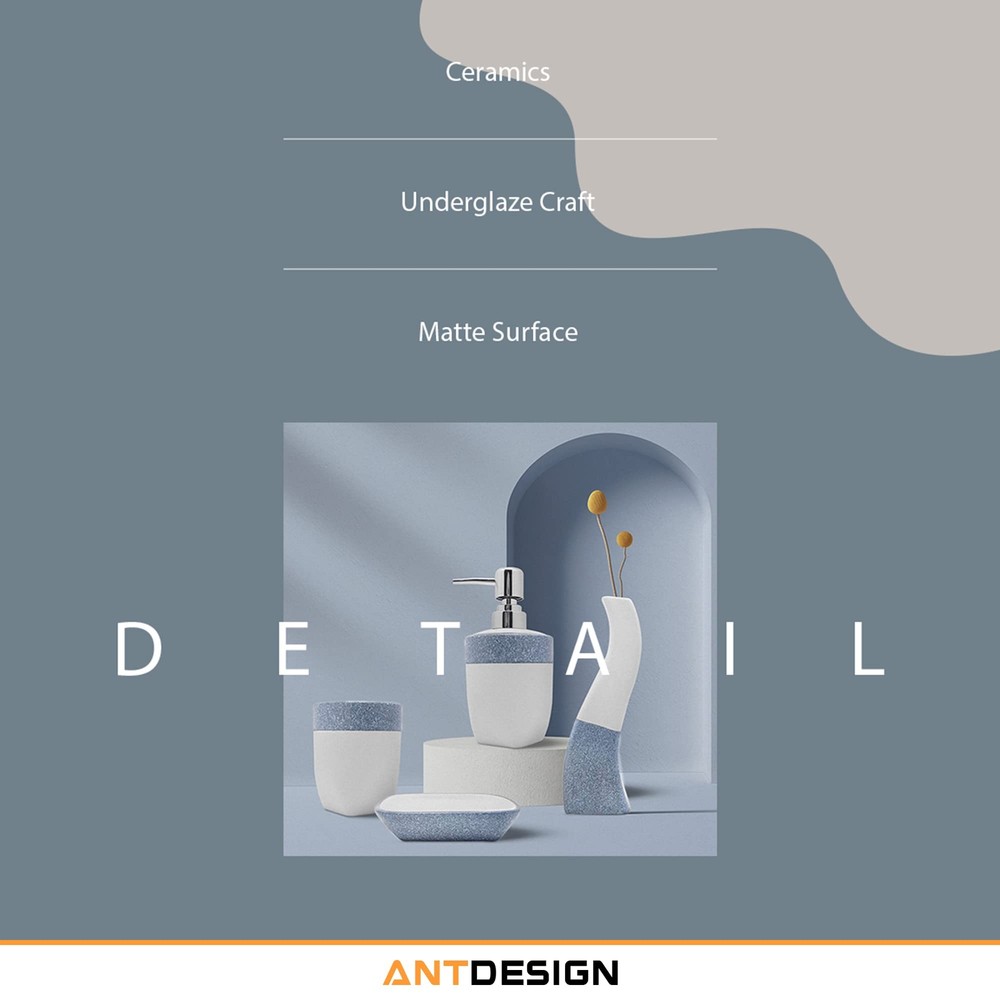 AntDesign Blue Bathroom Accessory Set 5 Pcs, Including Hand Pump Soap Dispenser, Soap Dish, Toothbrush Holder and Vase,for Modern Bathroom Décor Premium Design: Bathroom Decor Set, Perfect for wedding, housewarming gift,birthday gift, mother’s day gift,valentine’s day gift,thanksgiving gift,Chrismas gift,bridal or baby shower gifts.Gift box included. 5 Pieces Bathroom Set: Includes a soap dispenser pump , two mouthwash cups( used for rinsing, drinking, keeping stuff like toothbrushes, razors, makeup brushes or tweezers and so on) , a soap dish and a vase that can add sparkle to the bathroom. Elegant and Durable Ceramic: With Elegant Ceramic, good texture and noble outlook, this light blue bathroom decor is designed in a way to fit any bathrooms. Stylish Storage: Use the items all together in larger bathrooms or use the pieces separately when space is limited or your needs change; The navy blue bathroom accessories set will provide storage for daily essentials and the high-quality materials and finishes will complement your bathroom decor. Functional and Versatile: This bathroom set is for the one who loves interior design. You will find that the home accessory set is completely useful on an everyday basis.Fill your lotion, maintain your soap residue, store your things, and organize your toothbrushes with AntDesign complete bathroom accessory set. SHIPPING Domestic Buyers - We have confidence in our products, but if you are not fully satisfied please contact us within 30 days of purchase and you will get full refund. - We ship within 3 business days of payment, usually sooner - We offer FREE shipping on all orders! - We only ship to the lower 48 states, no APO/FPO addresses or PO Boxes allowed International buyers – please note: Import duties, taxes, and charges aren't included in the item price or postage cost. These charges are the buyer's responsibility. - Please check with your country's customs office to determine what these additional costs will be prior to bidding or buying. * Order Cancellation Policy ** You can return a product for up to 30 days from the date you purchased it. 1. The seller reserves the right to cancel the special case only due to eBay cancellation fee. 2. The decision of seller is the final. 3. The seller will respond to the cancellation request within 2 business days. Please wait for the result of cancellation. 4. In case the cancellation is not completed by some reasons, the buyer can follow the options below to get the refund. 4.1 The buyer can reject the item when it arrives. 4.2 The buyer can send the item back to the seller within 30 days If the buyer receives item (USA Shipment ONLY). The seller will provide the FREE return label to the buyer when the buyer opens " Return Item" case on eBay by using the reason as "Change my mind" ONLY. 5. When buyer has placed the order. The order will be processed and completed by automatic warehouse system within 5 minutes. In case that buyer sends the cancellation request after 5 minutes of placing the order, the request will be rejected. **Sending direct message to cancel the order is not allowed for every case.* Return Policy For the return case - If buyer would like to return the items for refund or replacement, please CONTACT SELLER to receive the free return label from seller. The refund or replacement will be processed with the tracking number of return label which is provided by seller only. The other ways of return which are not approved by seller will not be processed for the refund or replacement.