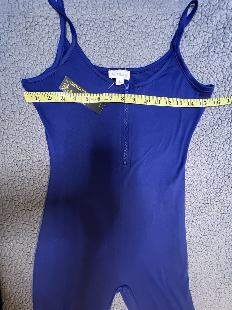 Blue Bodysuit Womens Size Large Sleeveless Spandex Pants Jumpsuit New With Tags new with tags measurements are in photos runs small so fits like a size medium SKU(A779-19)