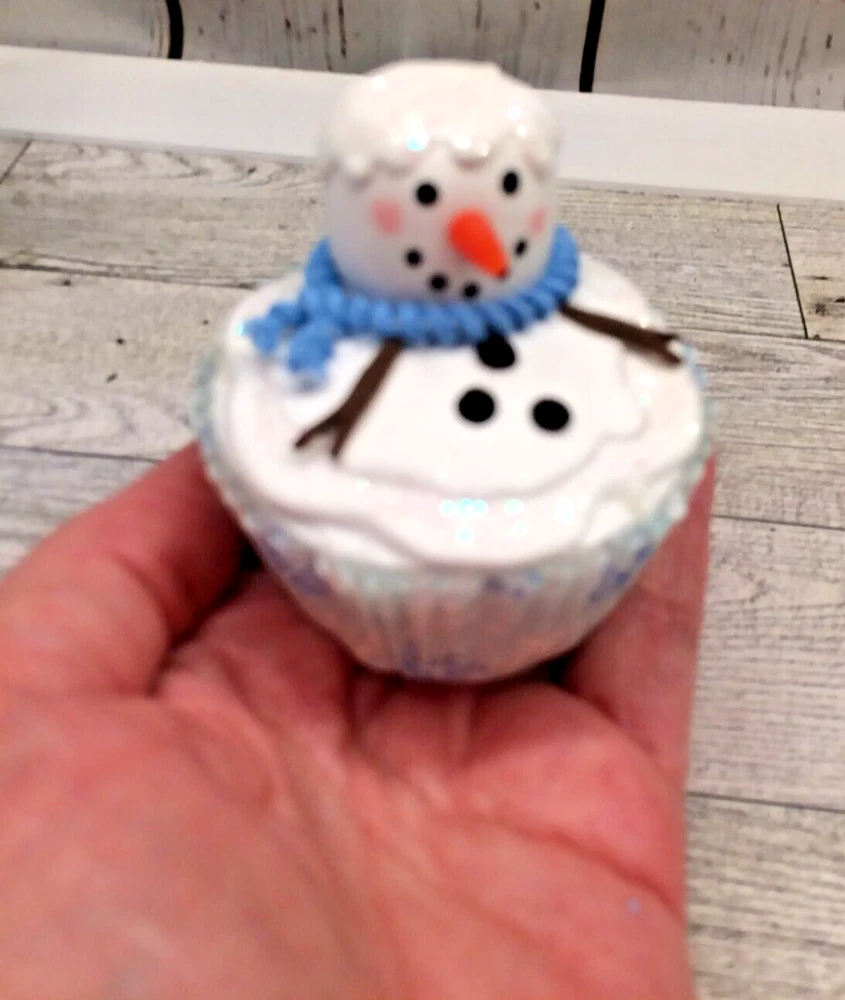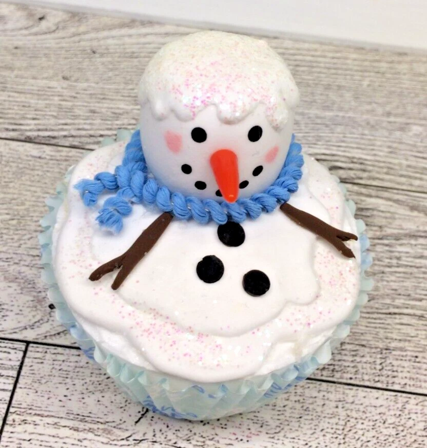Cute Handmade by Me- Blue Christmas Melted SNOWMAN Fake Cupcake Whipped Cream Tiered Tray Decor Perfect for Tiered Tray decor or Coffee Bar Decor or Shelf Sitter ....Super Cute !!! 2.5 " inches High 2 3/4" inches Wide Handmade items will not look all the same. Tray or Stand not included