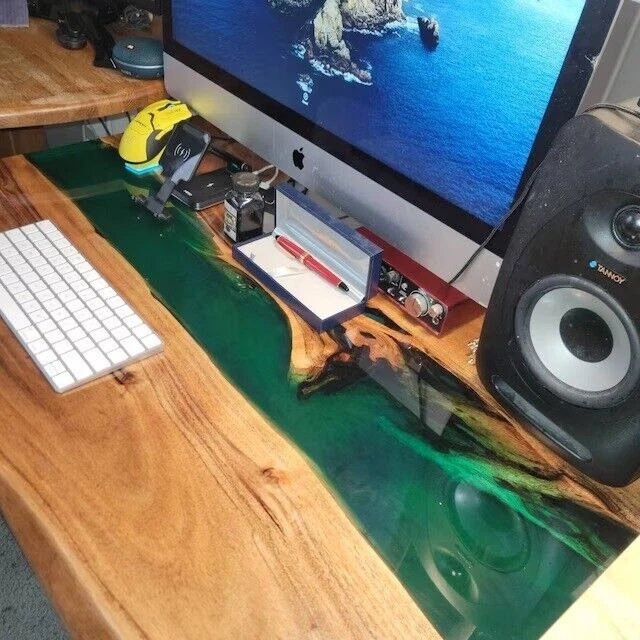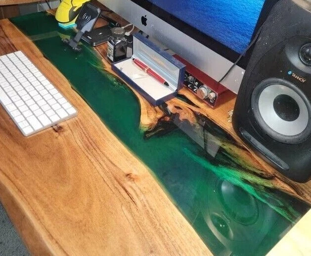 This is a Epoxy Resin Gaming or Trading Desk made with Walnut which is beautified with colored pigment . The resin river table is brand new and the contemporary design would be a unique addition to your home. With its perfect combination of style and function this piece of furniture is sure to be the star of any room. This modern table will also make for an awesome gift for your friends or relatives. Each one is created with high quality resin and individually handcrafted. Resin is a highly reflective medium which will catch anyone’s eye walking into the room. All tables are finished to the highest standard. The epoxy resin is very strong & durable with specialised UV resistance. The tables are delivered flat packed. Simply bolt the legs. This listing is for a custom Live edge Wooden Table. We have access to thousands of live edge slabs of domestic and exotic species that are imported from around the globe. We use only the highest quality of hardwoods and materials in our work, and believe only in perfection. Kindly Note: As raw wood is used in its natural form and shape to make the table, the table shown in the photos has already been purchased so actual product may vary from the picture shown. Kindly Note: Any accessories/Chairs and legs shown in picture NOT included in given prices. if you want legs then you are to pay spare money. Please contact me if you have any kind of query. Kindly Note: Please contact me if you have any kind of query.Buyers are liable for any customs and import taxes that may apply. I'm not liable for delays due to customs. Buyers are liable for any customs and import taxes that may apply. I'm not liable for delays due to customs.