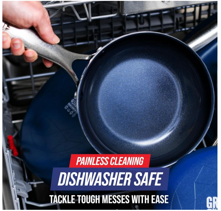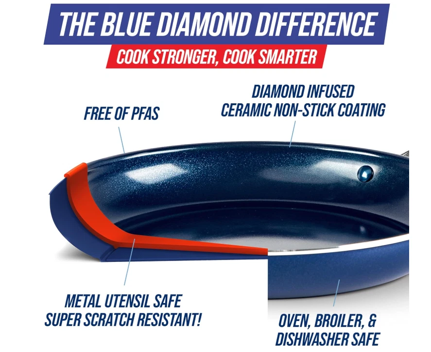 DIAMOND-TOUGH EXCELLENCE: Metal utensil safe surface with diamond-infused ceramic nonstick - 5x harder and 10x longer lasting than traditional coatings. Tough enough for your toughest recipes SUPERIOR HEAT MASTERY: Diamonds are 4x more conductive than copper, ensuring faster heating and easier cleanup. Efficiency meets convenience HEALTHY TOXIN-FREE COOKING: Toxin-Free coating - free of PFAS, PFOA, lead, and cadmium. Cook with confidence and peace of mind WARP CONTROL: Heavy-duty forged base prevents warping, wobbling, or degrading. Steady performance that stands the test of time VERSATILE KITCHEN PERFORMER: Oven and broiler safe up to 600°F. From stovetop to oven without missing a beat CLEANUP MADE EASY: Dishwasher safe for convenient cleaning. More time enjoying, less time scrubbing ENJOY THE VIEW: The tempered glass lid keeps heat and moisture inside so you can watch all the action on the outside COMFORT IN CONTROL: Riveted stainless steel handle for a secure and comfortable grip. Ergonomic design meets durability STOVETOP FRIENDLY: Compatible with all stovetops, except induction.