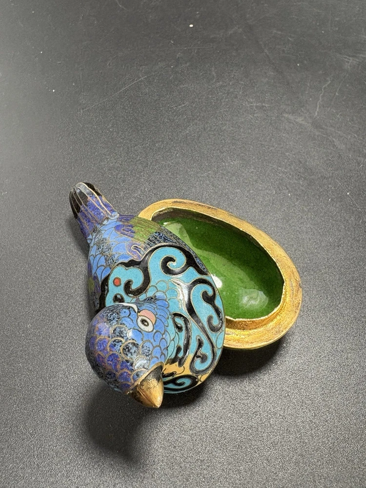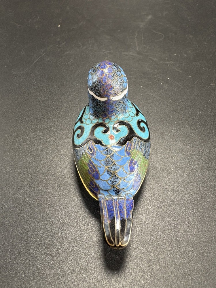 Vintage Chinese Cloisonné Enamel Miniature Bird Figurine 2”Tall 3ins L