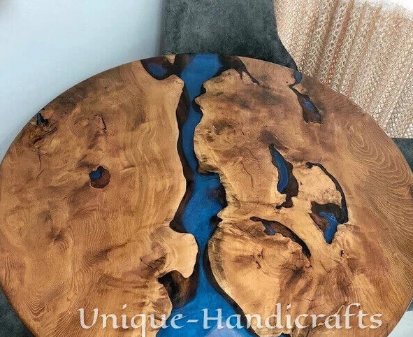 Item Width: According To Size Variations Pattern: Handmade Packaging: Export Packing Number of Drawers: 0 Item Weight: According To Size Variations Tabletop Material: Resin Shape: Round Item Length: According To Size Variations Department: Adults Handle Finish: Polished Handle Material: Wood Brand: Unique-handicrafts Finish: Polished Additional Parts Required: No Time Period Manufactured: 21st Century (2000-Now) Care Instructions: Clean with Dampen Cloth, Easy Care Wood Tone: Medium Wood Features: Live Edge Wood Material: Acacia Assembly Required: No Item Height: 0 Room: Bedroom, Dining Room, Home Office/Study, Kitchen, Living Room, Porch Theme: Animals, Diner, Holiday, Planet, Sports Year Manufactured: 2023 Personalized: No Style: Art Deco Color: Blue Tabletop Thickness: 20-30 mm Indoor/Outdoor: Indoor & Outdoor Model: Epoxy Table Top Product Line: Handmade Country/Region of Manufacture: India Original/Reproduction: Original MPN: Does Not Apply Required Tools: No Tools Required Type: Dining Table