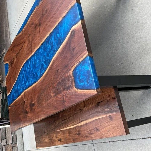 Blue Epoxy Resin Coffee Table Top, Wooden Center Epoxy Table Top Handmade Top