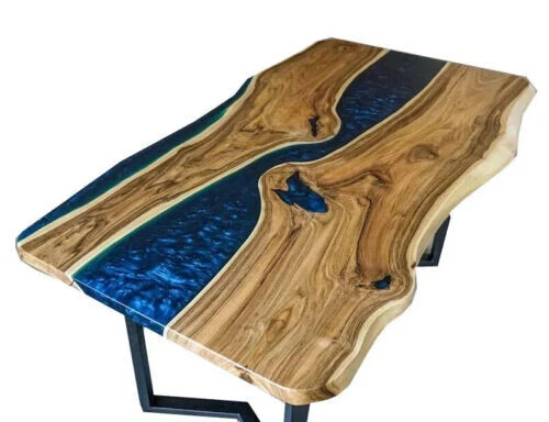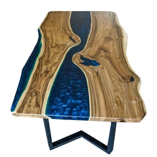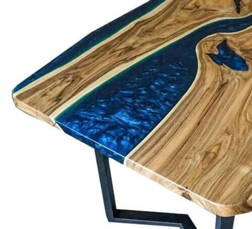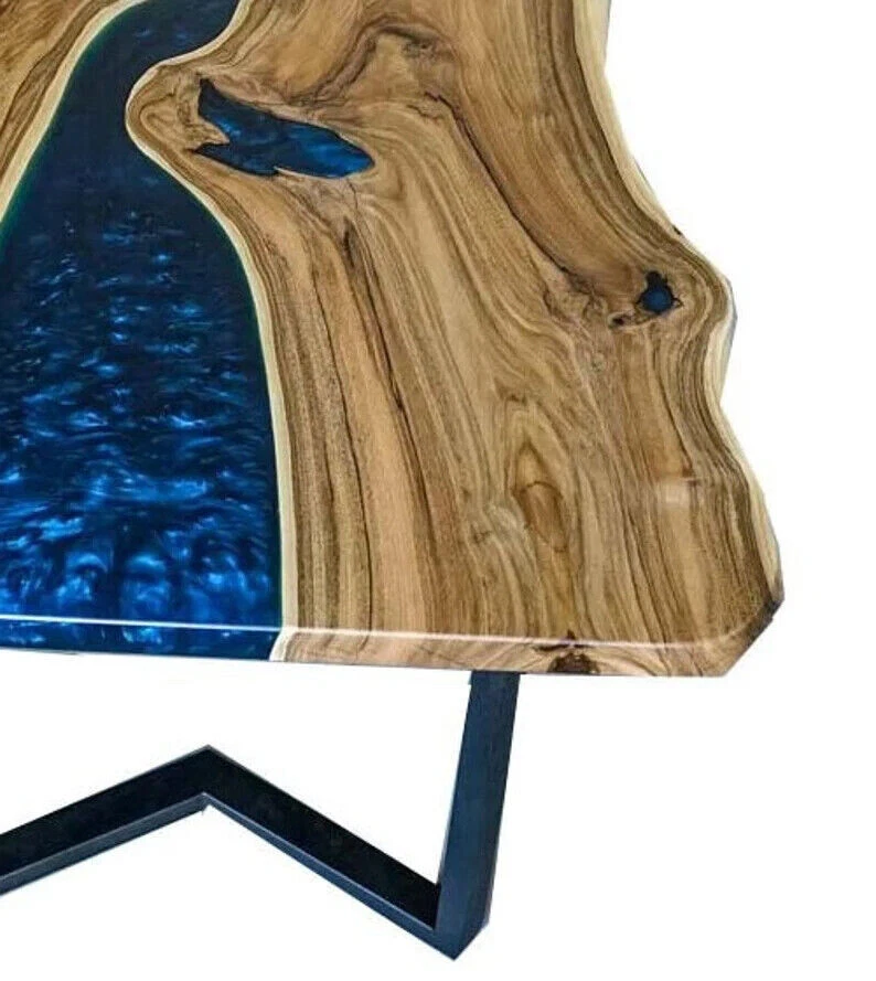Blue Epoxy Resin Live Edge River Dining Table Top, Sofa Center Epoxy Top Decors