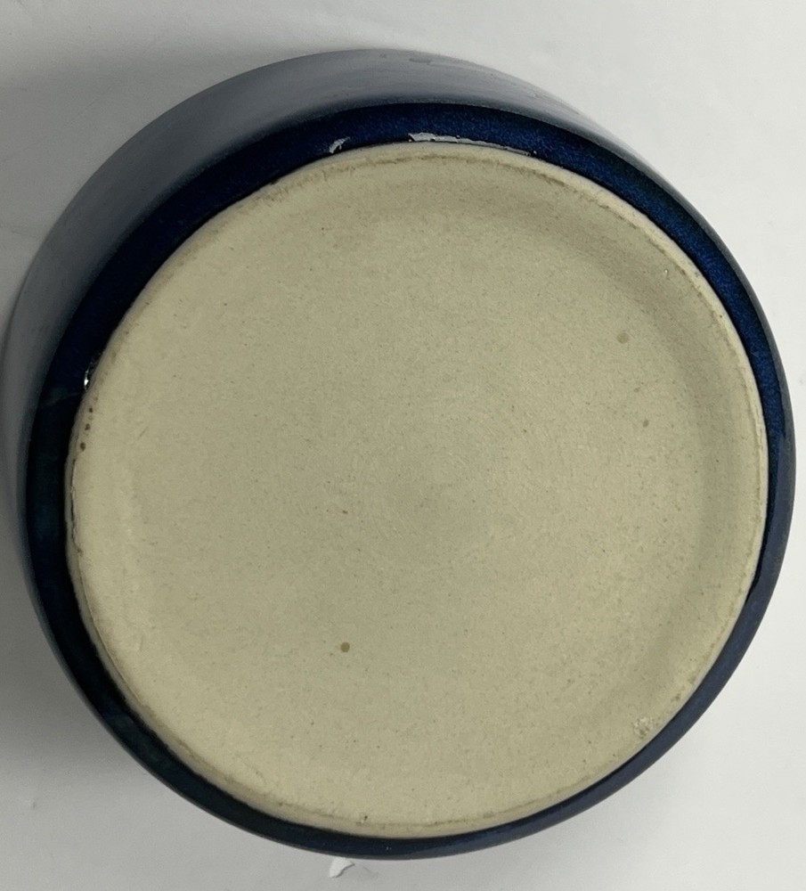 Dark Blue Ceramic Pet Bowl Glossy glazed ceramic bowl in dark blue with natural pottery color variations. Dishwasher safe pet bowl perfect for wet or dry food or as a water bowl. Medium size with a 5-inch diameter and 2-inch depth for small to medium dogs or cats. Pre-owned no chips or cracks - light base wear. Versatile decor blending in easy care quality ceramic.