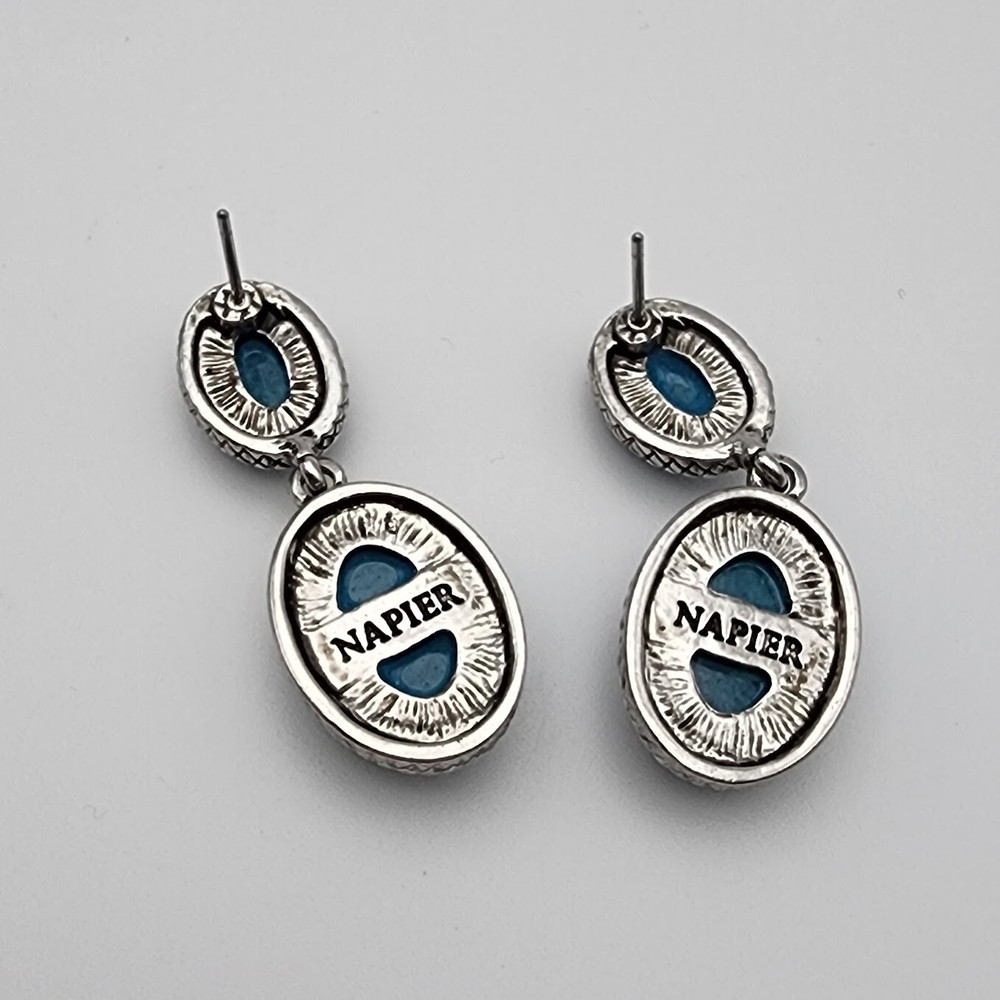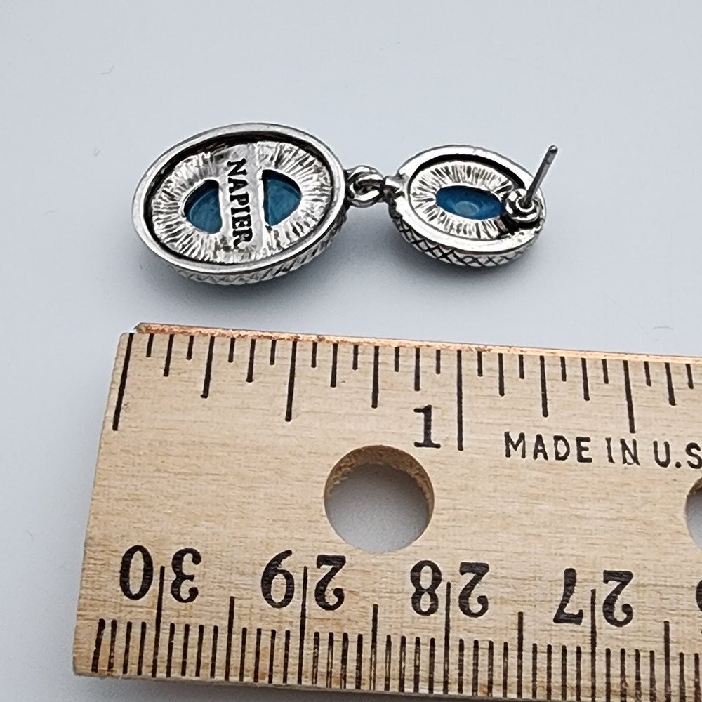 Closure:PostColor:Blue-GreenStyle:Dangle/DropSetting Style:BezelEar Area:LobeBrand:NapierHandmade:NoOccasion:Anniversary, Birthday, Christmas, Engagement, Graduation, Mother's DayMetal:SilverSigned:YesSeller Notes:“Great Condition. Do Not Look Worn. See Pics For Details.”Shape:OvalVintage:NoType:Earrings