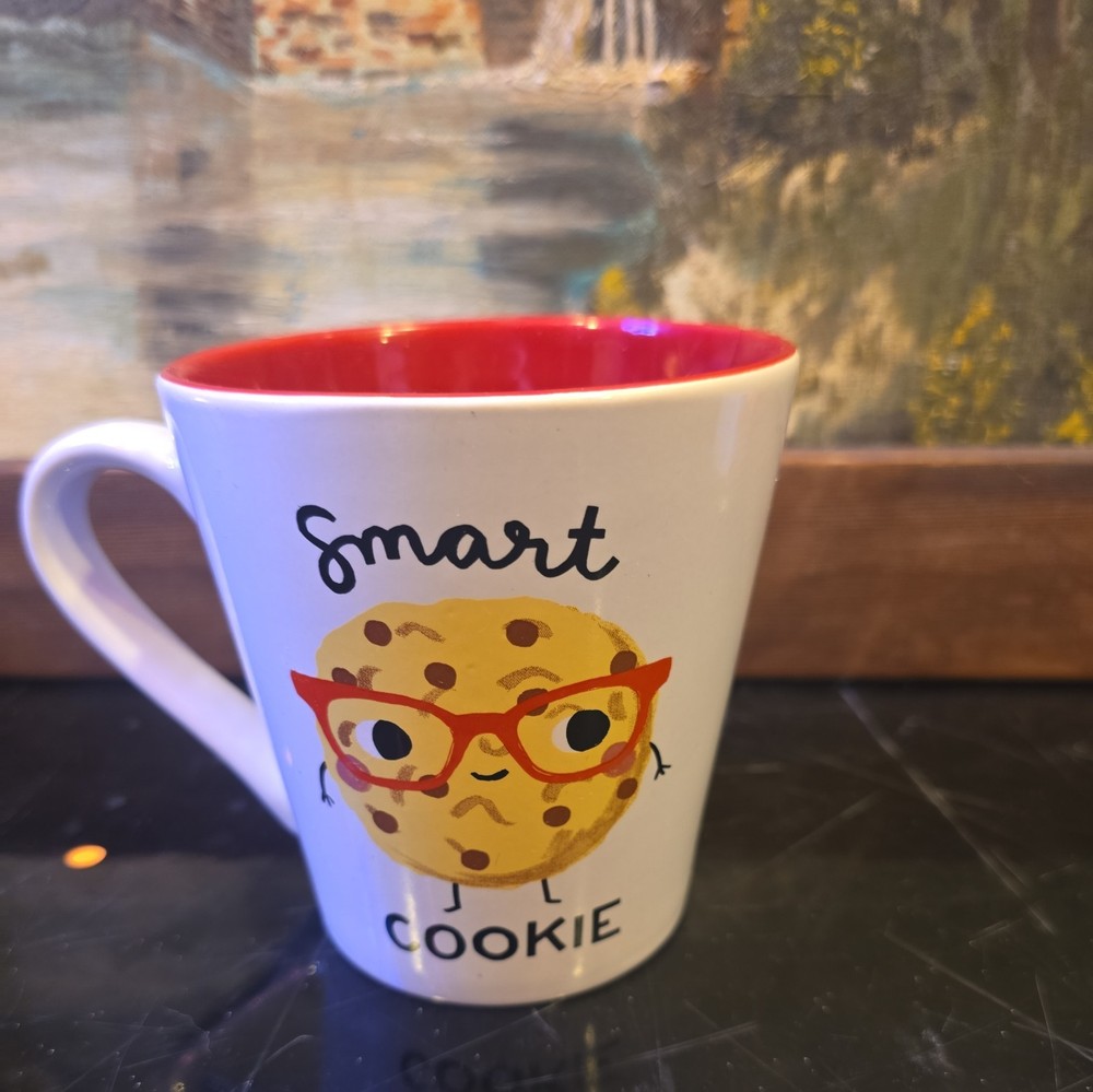 The Blue Harbor - Anne Was Here Smart Cookie Coffee Mug is a contemporary, novelty mug with a fun and curious theme. Made of ceramic, this round mug features a red and white color scheme with a pun-related design. With a capacity of 18 fl oz, this microwave-safe mug is perfect for coffee or tea, making it a unique and playful addition to your kitchen or dining area.