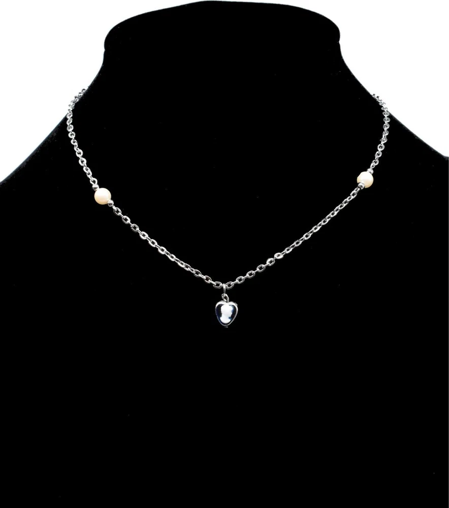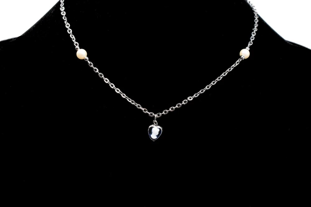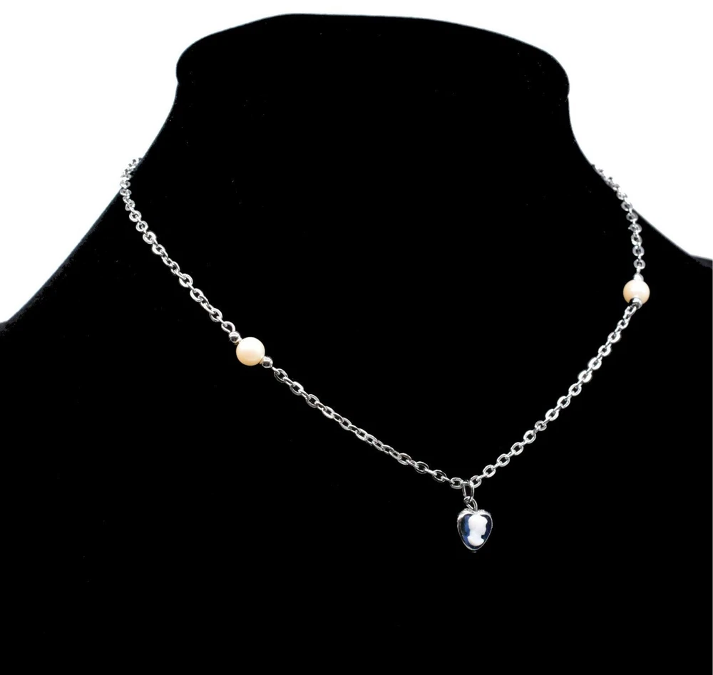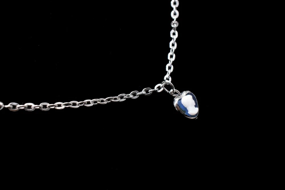 Blue Heart Victorian Woman Cameo Silver Chain Stylish Necklace 15 "