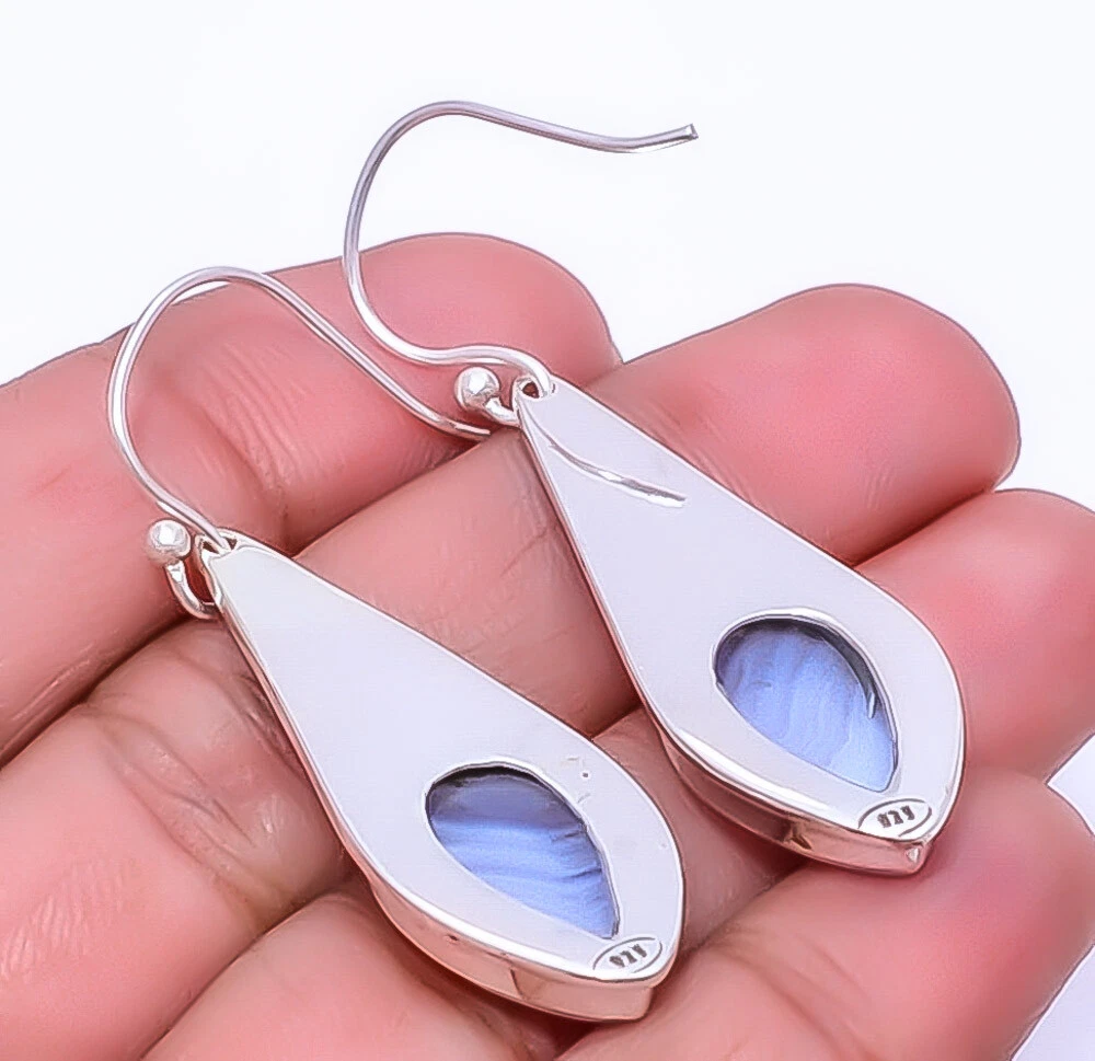 Theme Beauty Main Stone Depth As Seen in Picture Main Stone Length As Seen in Picture Main Stone Width As Seen in Picture Seller Warranty Yes Shape As Seen in Picture SKU E_9200_62_5 Main Stone Size Free Size Antique Yes Handmade Yes Type Earring Style Drop/Dangle Metal Sterling Silver Metal Purity 925 Parts Per 1000 Base Metal Sterling Silver Total Carat Weight 34 Main Stone Blue Lace Agate Main Stone Creation Natural Main Stone Treatment Natural Material Gemstone, Stone Number of Gemstones 2 Item Length 1.76 Features Engraved, Nickel-Free, Handcrafted Ear Area Lobe Brand Unbranded Country/Region of Manufacture India Country of Origin United States Color As Seen in Picture Diamond Clarity Grade Not Applicable Number of Diamonds As Seen in Picture Item Diameter As Seen in Picture Diamond Color Grade Not Applicable Customized No Colored Diamond Intensity Not Applicable Certification 100% Genuine Guaranteed Setting Style Bezel Occasion Christmas, Birthday, Anniversary, Engagement, Wedding, Valen Shipping & Handling - Charge - 1st item-5.90 And Additional item-1.90 Handling Time - 1 Days . Delivery Time - 2 TO 3 DAYS. Shipping Service - USPS First Class Package 2 -3 Days. Returns - 1.We offer a 100% Money Back Guarantee minus shipping for 30 days after receiving the Item / item's. 2..The item must not be altered or damaged in any way shape or form. 3.Upon receiving these items your payment will be refunded. 4.Email us for return instructions before sending merchandise back. 5.Please allow up to 1 business day for all returns to receive credit. 6.Sizing does not affect the return policy. Payment - We accept PayPal for Payment ,should made with in 14 days once buying or winning done , in case of late information expected .