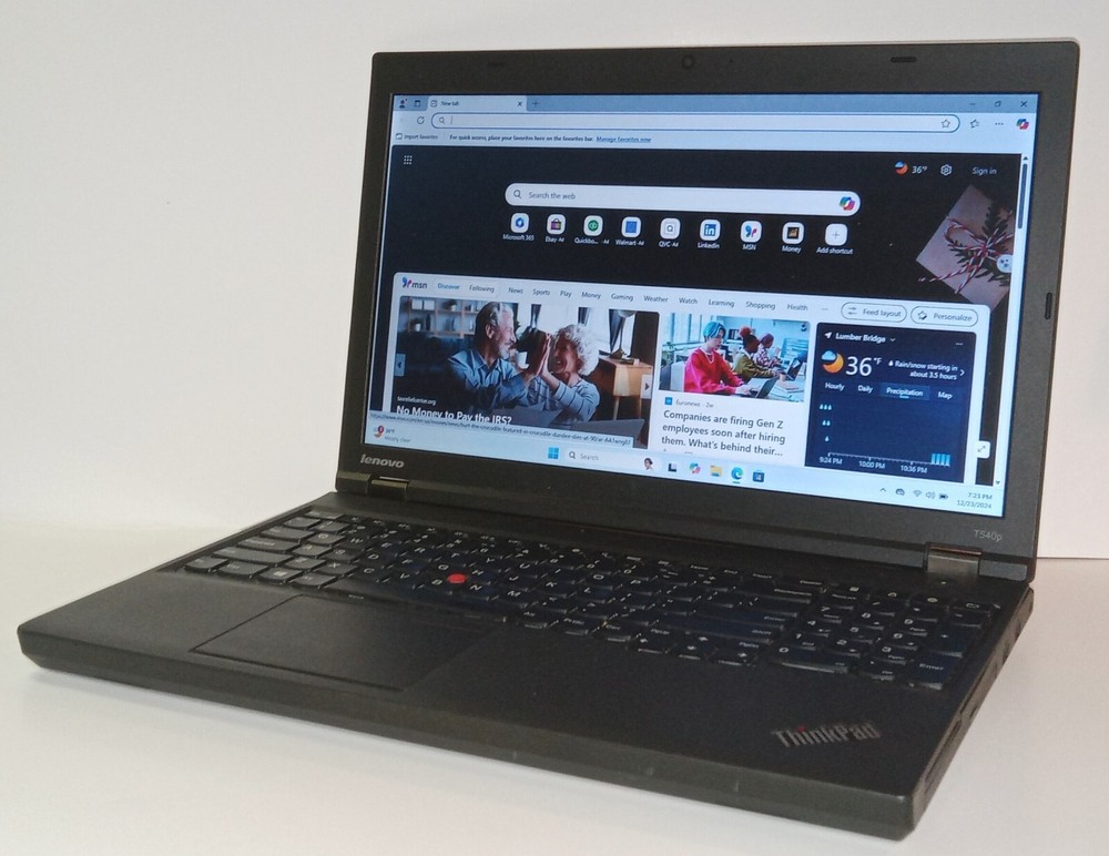 A clean, fast and working Lenovo ThinkPad T540P Laptop with a 15.6" LCD Screen, Intel Core i7-4600M @ 2.90GHz CPU, DVDRW Burner Drive, 512GB Solid State Drive, 16GB Memory RAM, Webcam, Bluetooth, Mini Display Port, 4 USB Ports, SD Card Reader, Wireless Internet as seen in the photo, Ethernet, Power Charger Adapter and Battery that does hold a charge and all it covers. It comes with freshly installed Windows 11 Professional Edition 64-Bit Operating System and Office 2007. This will make a great laptop for a Business Person, Student or Second Computer. It is Guaranteed not to be DOA . The rear screen cover has been painted blue and o verall, the laptop looks and runs good. Payment is due within 48 hours after the end of the auction. Shipping and Handling is $24.95 in the USA and No Worldwide/International Shipping. Thanks for looking. Detail: Windows 11 Professional Edition 64-Bit Operating System Intel Core i7-4600M @ 2.90GHz CPU 16GB Memory RAM 512GB Solid State Drive Intel HD 4600 Video Graphic 15.6" LCD Screen DVDRW Burner Drive Internal WIFI 4 USB Ports Webcam Bluetooth Mini Display Port SD Card Reader Battery ( does hold a charge and is running on battery power in the photos .) Power Charger Adapter VLC Media Player Roxio Creator CD/DVD Burner Software Microsoft Office Professional 2007 Complete Suite (installed)