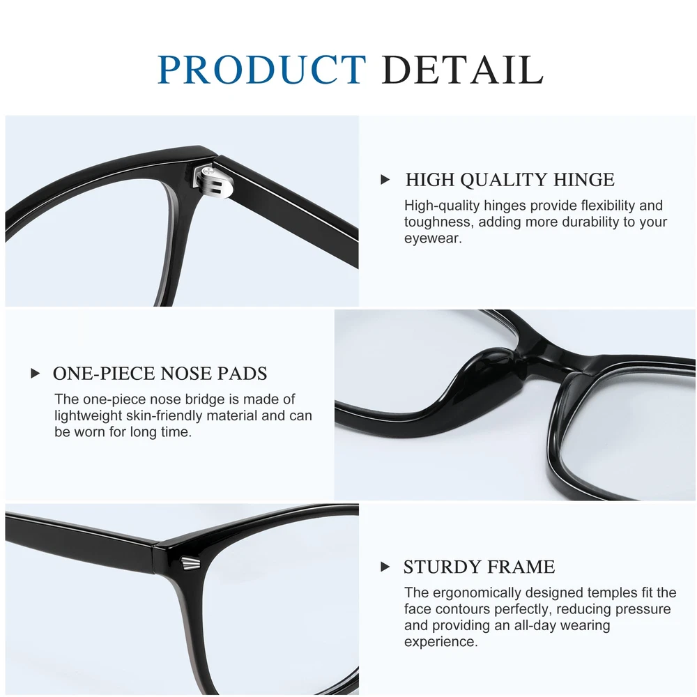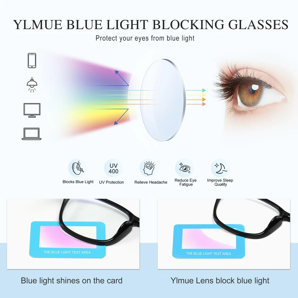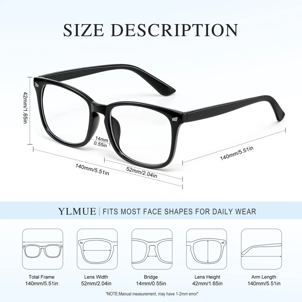 BLUE LIGHT GLASSES FOR WOMAN/MEN: blue light glasses with anti-blue light function can block more than 99% of harmful light. Reduces eye fatigue and protects your eyes from blue light and glare. Very suitable for long hours in front of electronic screens to keep you focused and comfortable HIGH QUALITY MATERIALS: Blue light blocking glasses are made of lightweight, impact-resistant high-quality plastic, with one-piece nose pads that fit the skin and metal hinges to ensure durability. Using advanced lens technology to provide higher clarity and reduce glare, bringing you a better visual experience STYLISH & COMFORTABLE: Our blue light glasses for women/men can be easily matched with any style and are suitable for most shapes. Comfortable to wear for a long time PROMOTE SLEEP & RELIEVE EYE FATIGUE: Our anti blue light glasses help to reduce the effects of blue light on the eyes, thereby improving sleep quality. They can also effectively relieve eye fatigue and dryness caused by long-term use of electronic devices THREE LENSES: Clear lenses with anti-blue light function can block harmful light for daily use. Gaming lenses could greatly enhancing your gaming experience when facing the screen for a long time. Polarised night vision lenses reduce glare making night driving safer