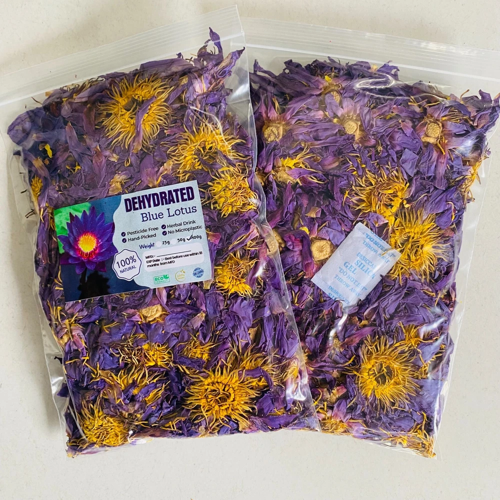 Department: Adult, Unisex Type: Herb Ingredients: Blue Lotus (Nymphaea Caerulea) MPN: N/A Administration: Oral Brand: Homemade Active Ingredients: Blue Lotus Body Area: Head, Heart, Skin Features: Natural, Organic When to Take: After Meal Main Purpose: Anti Inflammatory, Antioxidants, Concentration and Memory Support Scent: Herbal Country/Region of Manufacture: Sri Lanka Dosage: 1 - 2 Flower at onece Formulation: Tea Expiration Date: Best before use 18 months from Manufacturing Date Type of Diet: Ayurvedic, Herbal, Natural, Organic