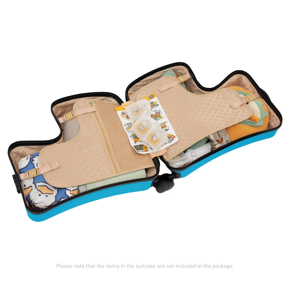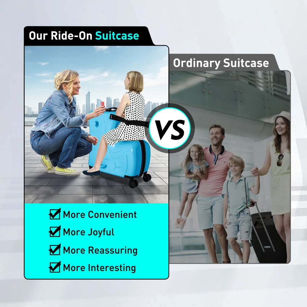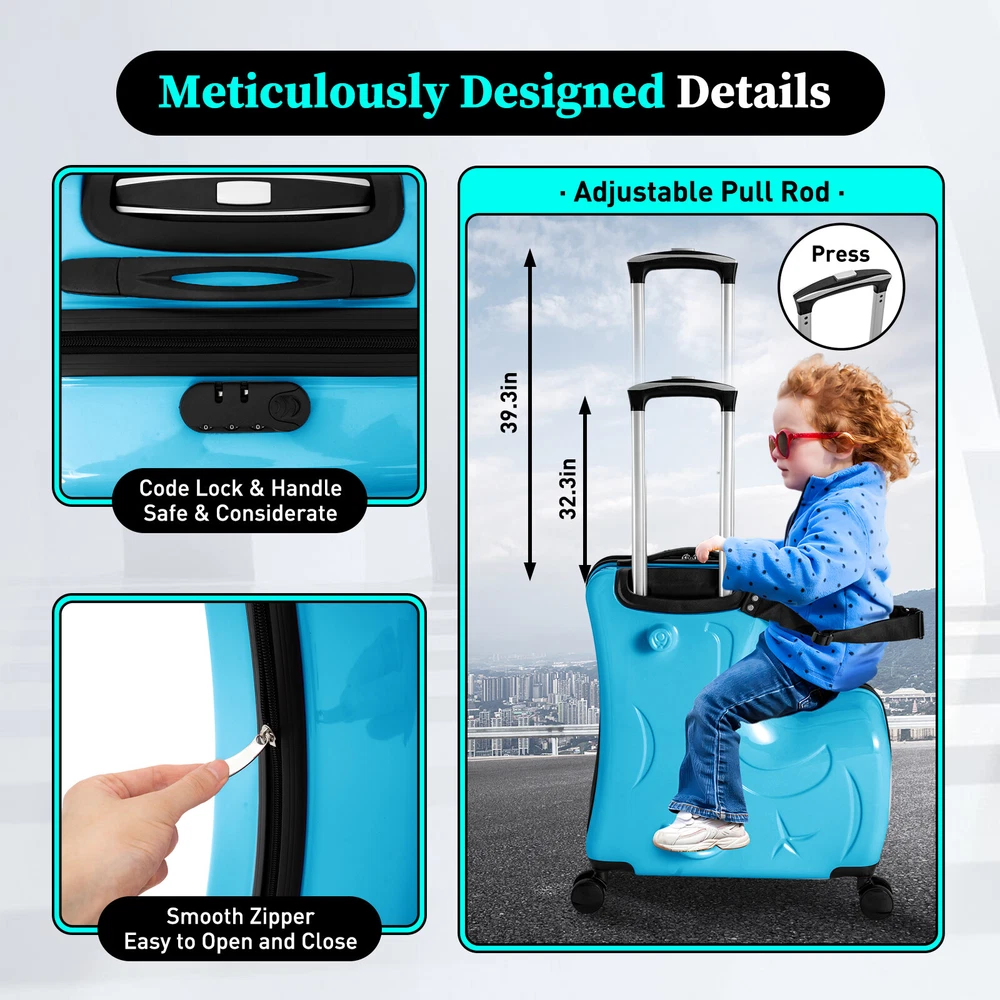 Blue Luggage Case Kids Ride-On Roll Suitcase Luggage Bags Wheeled Trolley Lugg Description Traveling with children has always been a troublesome problem for most parents. With this ride-on travel suitcase, they can sit on it, greatly reducing the burden on the parents. Large capacity allows you to store a lot of clothes and items for your travel needs. It is suitable for travel and business trips to load clothes and other items. It's suitable for children under 6 years old. Key Features High-quality Materials: The exterior of this product is made of PC, ABS, TPE, and aluminum alloy, which is strong, durable, wear-resistant, and waterproof. The PC material is environmentally-friendly, odorless, and tough, so that children can use it more safely. Large Capacity: The dimension of this ride-on travel suitcase is 20inch, which allows you to store a lot of clothes and items to meet your travel needs. More Travel Fun: It is not only a good helper for travel but also a fun toy for leisure time. It can add fun to the trip and bring children good childhood memories. Multiple Functions: It can be loaded with clothes and other items. It can also carry children, which can save you a lot of energy. It is also very convenient for taking the child out alone. Stable Storage: There are compartments on both sides to keep items neat, and one side has a zippered mesh compartment for storing small items with visibility. High Safety: It has a safety belt to ensure the child's safety and stability in the seat. You can adjust the length of the seat belt to suit your needs. There are also handrails on both sides of the luggage to offer support as a force point. Strong Load-bearing Capacity: The hard surface of this suitcase can resist heavy pressure, making this product have a strong load-bearing capacity of 66lbs. It is strong enough for you to store items and carry kids. Combination Lock: This ride-on travel suitcase has a combination lock, which effectively protects your luggage and gives you greater peace of mind when using it. Comfortable to Ride: This suitcase is equipped with two footrests, which is more comfortable for children to ride. Ideal Gift : This is an ideal International Children's Day gift, birthday gift, or Halloween gift for the children of your friends and family. Guaranteed Customer Service: We aim to provide quality products and services. If you have problems, please feel free to contact us. We will reply and solve the problem for you as soon as possible. Details Top Handle: This product has a handle on the top, which makes it easy to carry and load into the trunk of your car. The comfortable curvature makes you lift it for a long time without hand pain. Cartoon Stickers: It is equipped with cartoon stickers. Children can decorate the suitcase according to their preferences, which is more interesting. Trolley Handle: The trolley handle can be adjusted in multiple lengths for people of different heights to use easily. Made of aluminum alloy, the handle is very strong and durable, while significantly reducing the weight of the luggage. Universal Wheels : The TPE wheels are wear-resistant, universal, and produce low noise, allowing smooth movement and good stability. The double-row wheels turn and move effortlessly, allowing you to walk more easily, and use them more conveniently and comfortably. Application It is suitable for travel and business trips to load clothes and other items. It is suitable for children under six years of age to ride. Specification Color: Blue Shape: Horse-shaped Main Material: PC, ABS Universal Wheels Material: TPE Trolley Material: Aluminum Alloy Lining Material: Polyester Wheel Style: Universal Wheel Suitcase Hardness: Hard Carrying Parts: Soft Handle Whether with Trolley: Yes Number of Wheels: 4 Closing Mode: Zipper Lock Type: Password Lock Applicable Weight: ≤30kg/66lbs Applicable Age: 3-6 Years Applicable Height: Below 1.2m/4ft Pull Rod Height: 82-100cm/32.3-39.3in Gross Weight: 4.4kg/9.7lbs Net Weight: 3.3kg/7.27lbs Product Length: 30cm/11.8in(Up), 50cm/19.7in(Down) Product Size(W*H): 25*55cm/9.8*21.6in Package Size: 51*33*58cm/20*13*22.8in How to Set the Combination Lock The initial password of the combination lock is "000". After rotating to the "000" position, push the unlock button to the right. Slide the password wheel to reset a new password. The new password is successfully set by messing up the password you just set. Package Included 1* Cycling Travel Case 2* Cartoon Stickers 1* Password lock English Manual 1* Seat Belt Notes Please note that this children's ride-on travel suitcase is suitable for children under six years of age to ride. The initial password for the password lock is "000". Please read the manual completely before installation and use, and pay particular attention to the safety instructions included. Please allow the slight color difference caused by the shooting light and 1-3 cm error due to manual measurement, and make sure you do not mind before ordering. Payment Delivery details Terms of sales About us Contact us Payment We accept ebay payment 。 Fees such as import duties, taxes are not included in the item price or shipping costs. These charges are the buyer's responsibility. Delivery details Shipping: 2-9 working days to: USA Terms of sales We maintain high standards of excellence and strive for hundred percent customer satisfaction. Feedback is very important to us. We hope that you contact us immediately before you give neutral or negative feedback, so that we can address your concerns. It is impossible to address issues if we do not know about them! About us Your satis faction is our ultimate goal. We work hard to earn your trust and future business. Our certified technicians have tested each item before shipping. The unit comes with 1 year limited warranty on all manufacturing defects. a) If you receive a defective item, you may return it or ask for a discount. Please contact us within 14 days after you receive the package.
