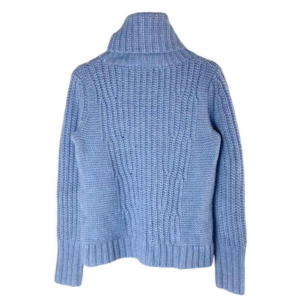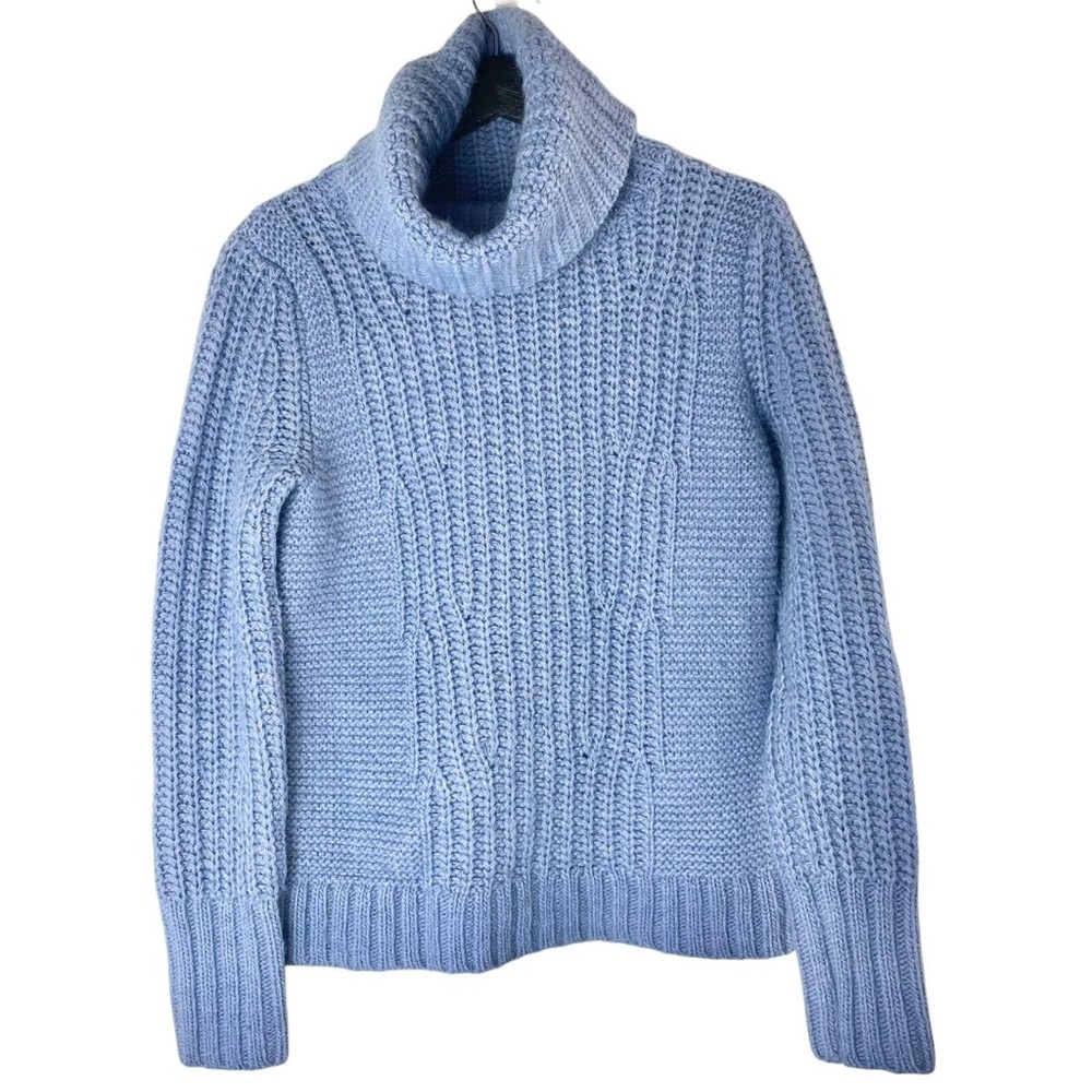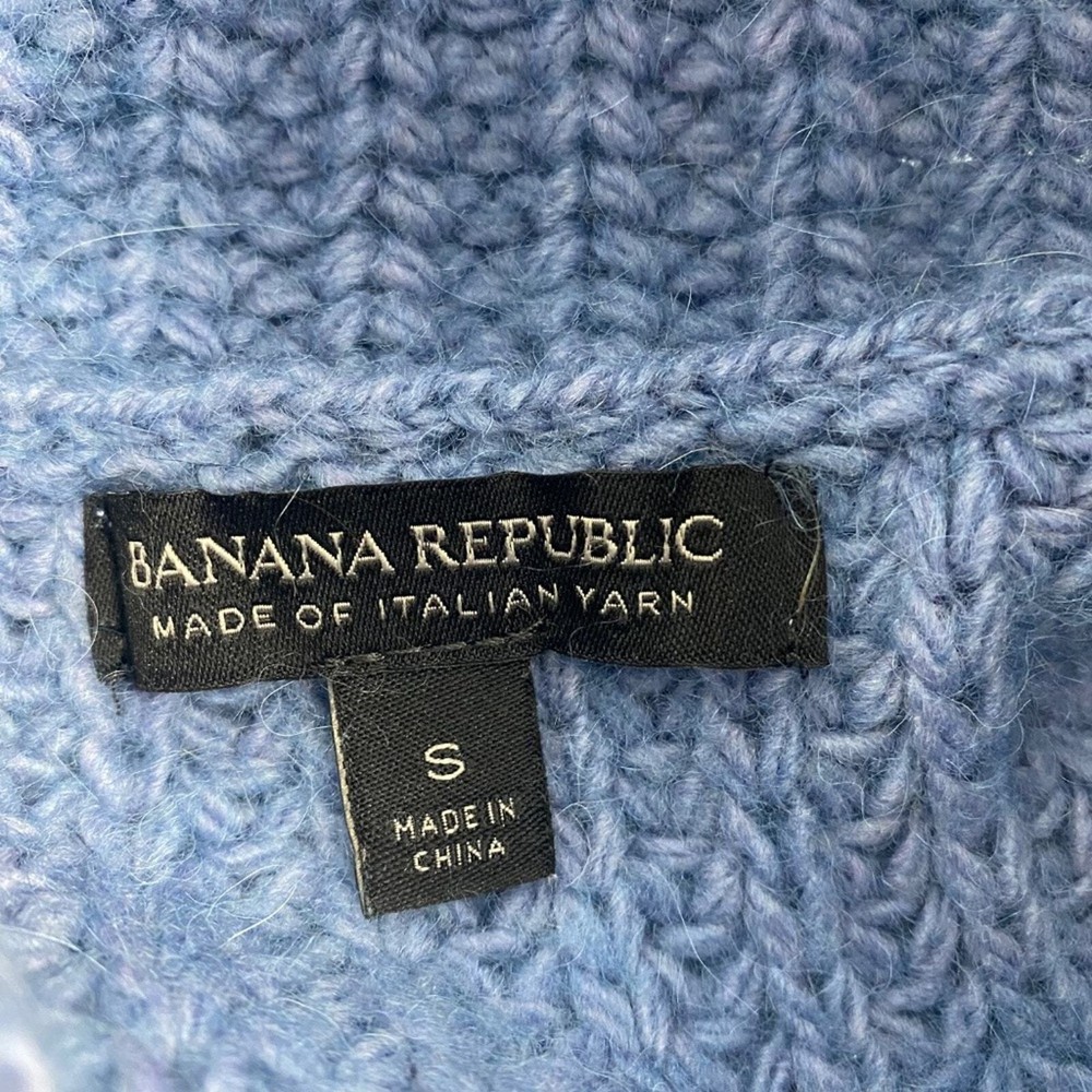 Banana Republic - Mixed Stitch Turtleneck Sweater Color: Blue ——>model to show fit NOT color<———— Size S Condition: Pre-Owned in great used condition. Cleaned and ready to wear Ultra-luxe Italian yarn turtleneck, long sleeves and ribbed trim. Measurements approx: Length: 22” Armpit-to-armpit: 19” Sleeves: 23.5”