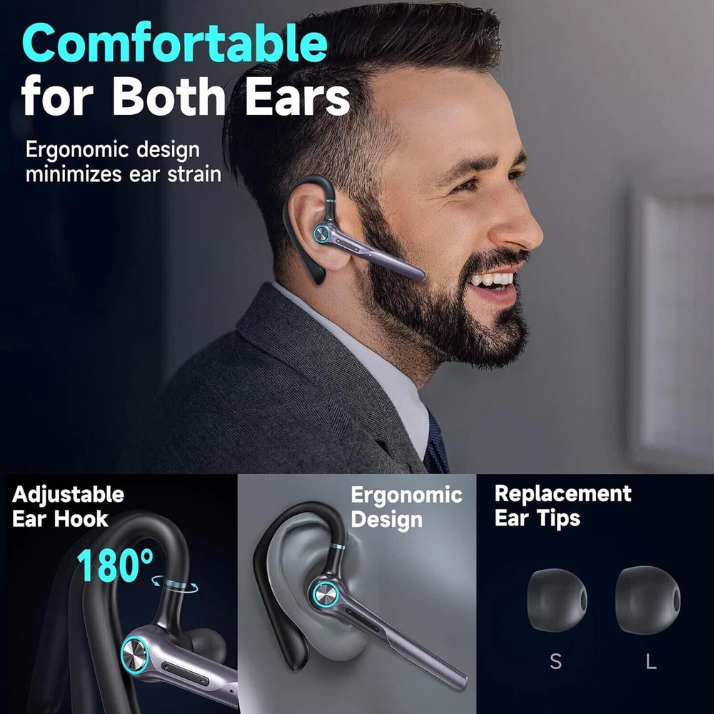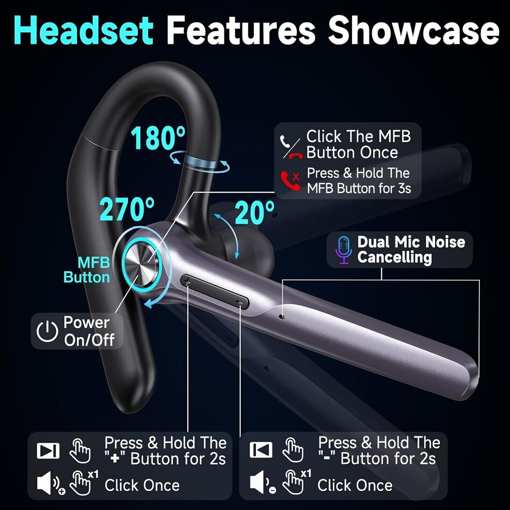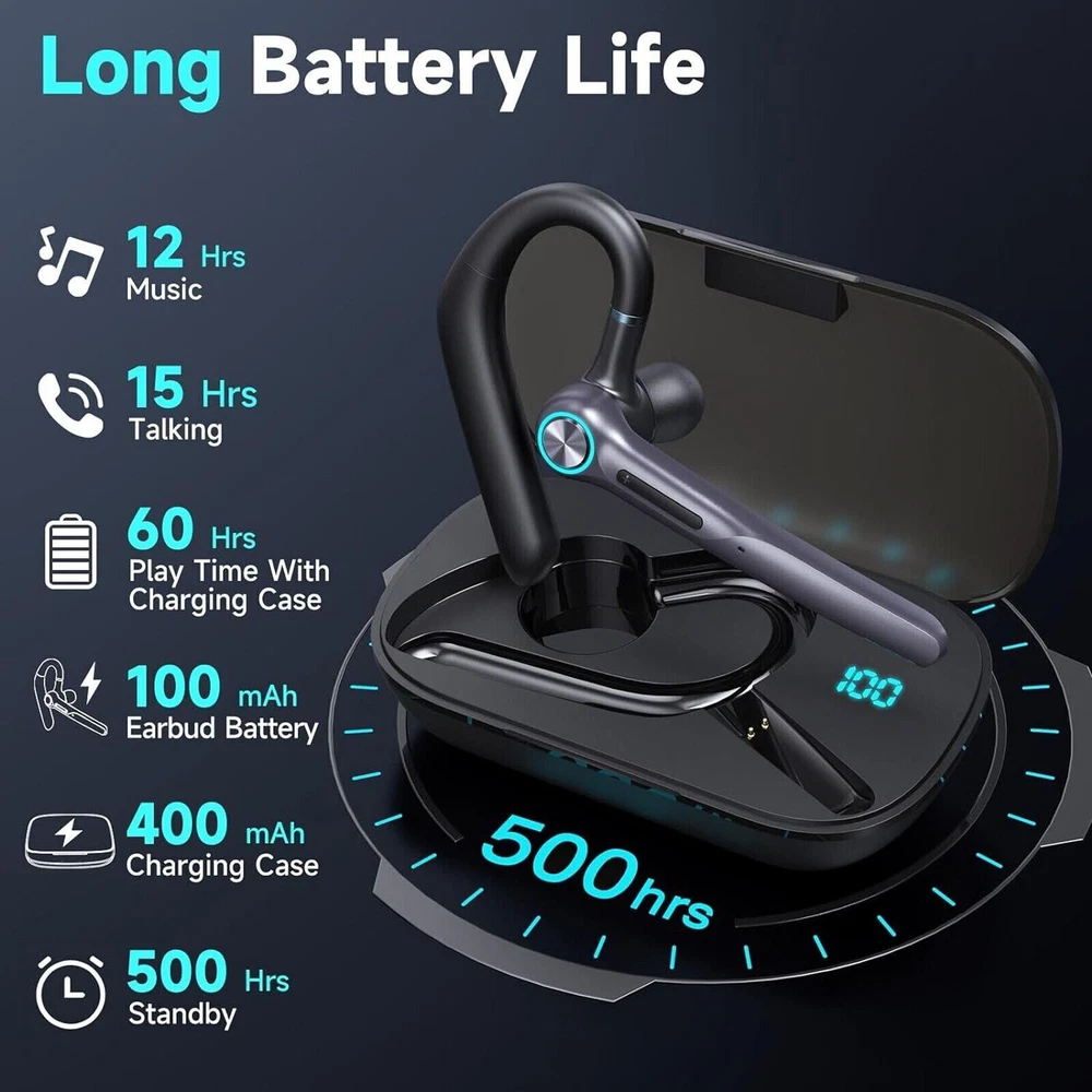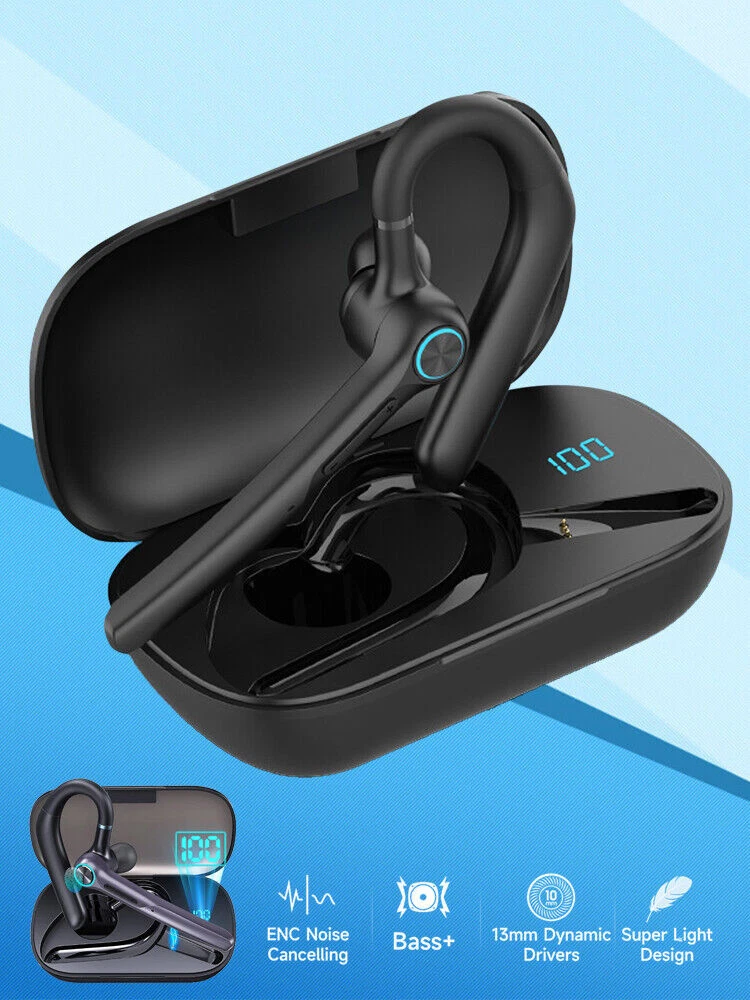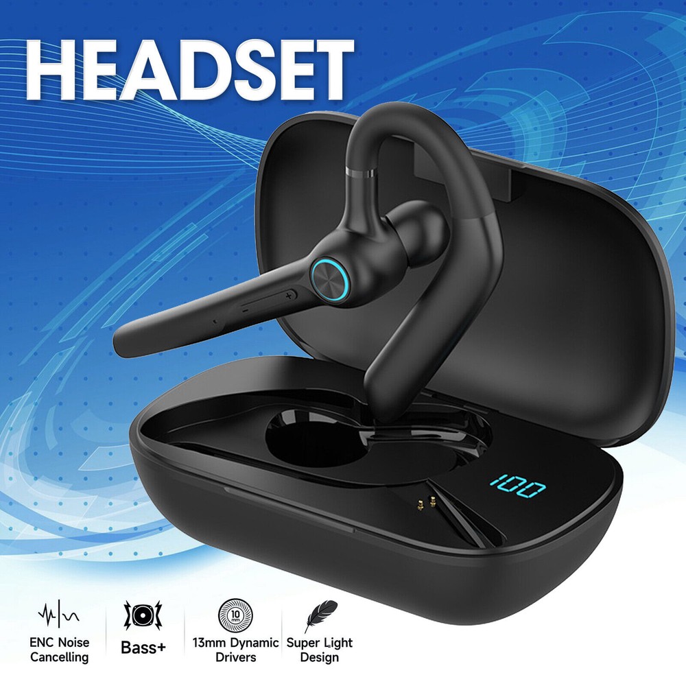 Item description from the seller: Quick Pairing -- Adopt upgrade chip ,it make the signal transmission more smooth and provides low latency and stable connection with most device, like iOS/Android smart phones, tablets, laptops from up to 33 feets away without signal loss or music dropouts.Stable headset for cell phones. Picking up the earphone from the charging case,it will power on automatically, and then activate mobile phone function to search to connect. Dual Mic Noise Canceling Headset -- Wireless headset advanced noise canceling technology and combines 2 built-in HD microphones and high-quality speakers which can eliminate background noise without missing any single conversation details and the call sound will be more transparent.Don't worry about interruptions on listing to music or calling. 60Hrs Playtime with LED Charging Case -- Built-in 400mAh capacity charging case,the wireless earpiece with LED display make it obvious to show the battery power of the case.It can not only protect the wireless earphone from damage,but also provide 4 charging times for the wireless earpiece,which is easy to carry and charge your earphone at any time.Single 1.5Hrs charging time can be used 12-15 hours of playtime meet your needs.With the charging box, you will get totally 500hrs standby. Easily Switch & Hands Conversation -- Headset with button control operation, you can control music play/pause, previous/next track,answer/reject/end the call or wake up the voice assistant via tap on MFB button.No need to operate these on your phone.Easy to reach buttons let you enjoy real hands- of wireless for calling.With a mute function,press the mfb button for 2s during the call with a prompt''mute is on'', the other party will not hear your voice. (Not support on computers. Comfortable Fit Design -- This wireless earpiece is designed to fit in wide range of both ear shapes.Flexible rotatable ear hook and boom mic and rotates for a comfortable fit.The angle can be adjusted ly and will be worn stably. No more burden on ears even after wearing it for a long time.Eumspo earpiece are widely compatible with IOS/Android system devices and most devices. Age range description: Adult Product Description: Q1: How to Pairing the headset? A1:1-Check the headset is charged; 2-Activate your device's pairing function; 3-Take out the headset from the charging case,it will pairing with each other and with a voice prompt"pairing"; 4-Use your device to search the item"G3",click to connect,there will have a voice prompt"Connected". Q2: How to adjust the volume? A2:Click the "-"button once for decreasing volume,click the"+" button once for increasing volume. Q3: How to check charging indication? A3:When the headset is charging,the light of the headset will flash. When the charging case is charging,the LED number display will flash. Warm tips: Please charge the charging case every 1-2 months when not used for long periods of time. It is recommended to gently wipe the charging pins and copper column with a cotton swab on a regular basis.Adjust position of the headset/ Clean the spring needle and copper column with a cotton swab. Never use liquids to clean the sport earphone. Otherwise, the earpiece charge unsuccessfully or even can't power on because the magnet connector is oxidized. What you will get:2 x single wireless headset;1 x charging case;1 x user manual;2 x replacement eartips;1 x charging cable.