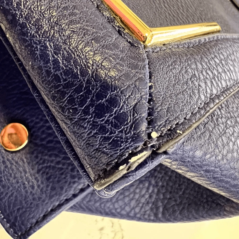 Blue Pebbled Faux Leather Tote Handbag (Broken Zipper)