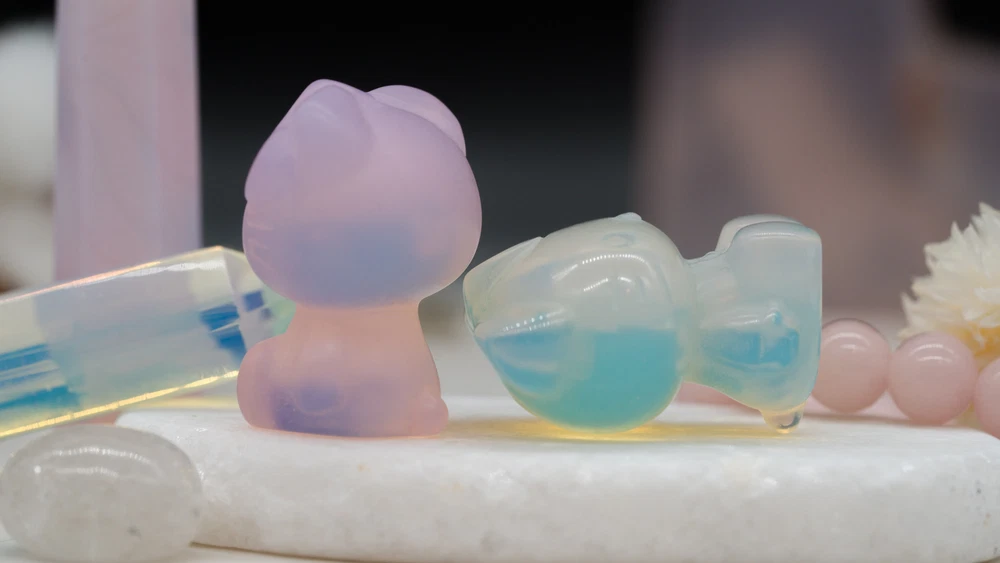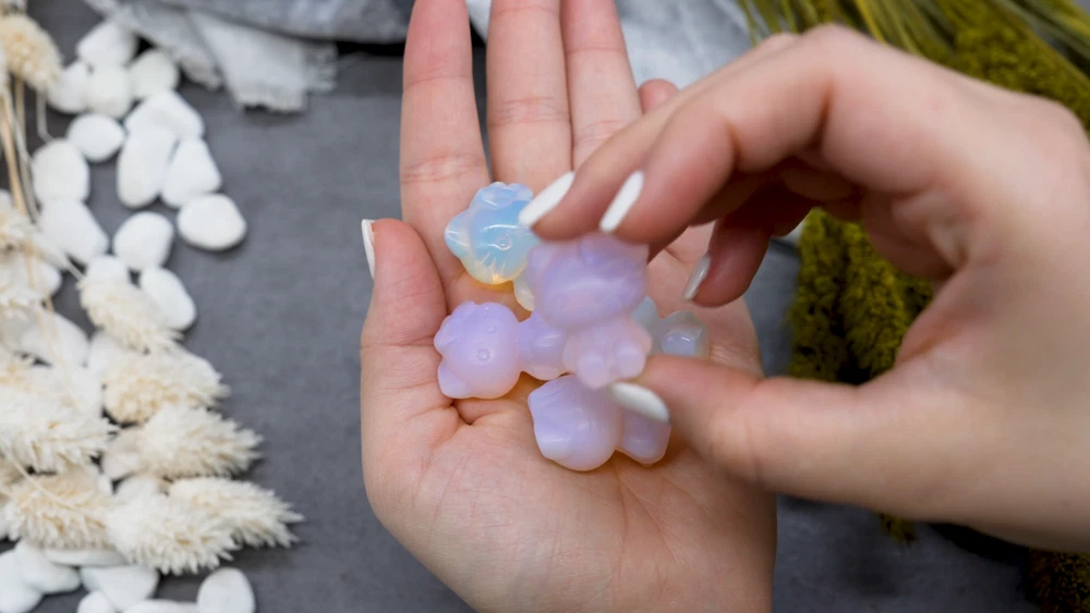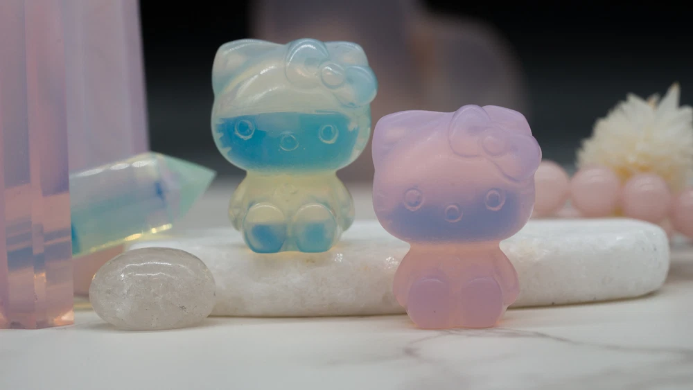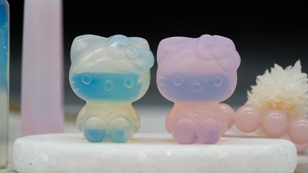 These cute Hello Kitty character fanart carvings are made from opal and pink opalite crystal materials. You will receive one (1) intuitively chosen crystal carving in the color chosen from the drop-down menu, measuring approximately 1.2" high. Example photo has been provided for approximate size reference. Gems and crystals are great for altars, grids, terrariums, pocket stones, gifts, home decorating, jewelry, collecting and more! They are also wonderful additions to meditation, spiritual, and chakra work. Opalite is a subtle yet highly energetic stone and improves communication on all levels, especially in a spiritual aspect. *This listing uses professional photography to provide samples of our collection of products. Each stone is natural, unique and beautiful so please expect slight variations in color, texture, and size. You will receive a product similar to that of the picture, but not the exact product. **Please note that healing crystals are not a replacement for traditional medical treatment and are not meant to replace consulting with a medical professional and do not guarantee any medical cure for any condition. ***This is not an officially licensed Sanrio product, and only features the likeness of Hello Kitty on a fanart basis.