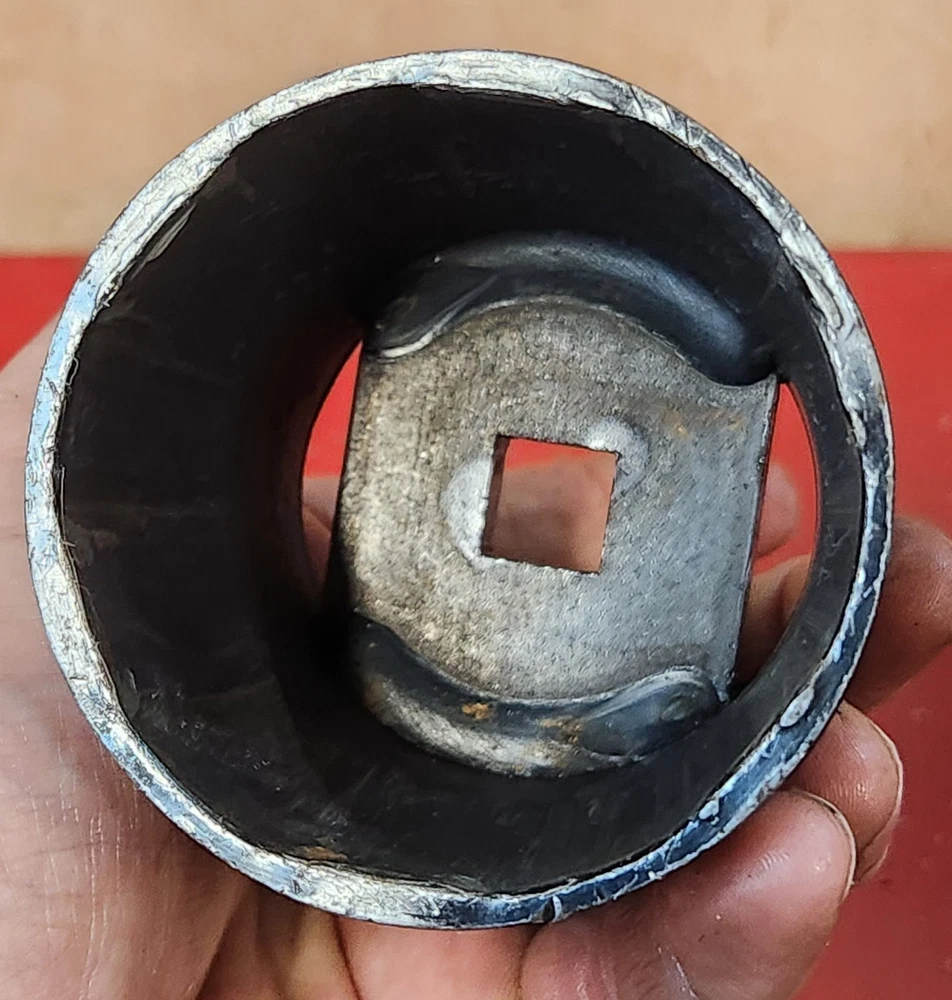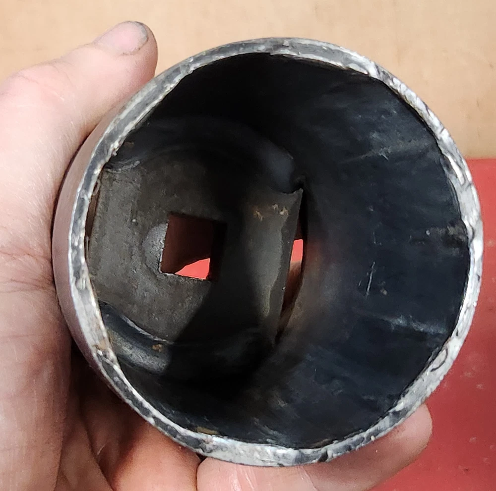 Blue Point 1/2" Drive 2-3/8" Axle Nut Socket 6 Point ANS 1939 Good to fair condition. Has scratches, blemishes, light surface rust in spots, small nicks, and other signs of use/wear. Owners marks consist of two notches ground into edge.