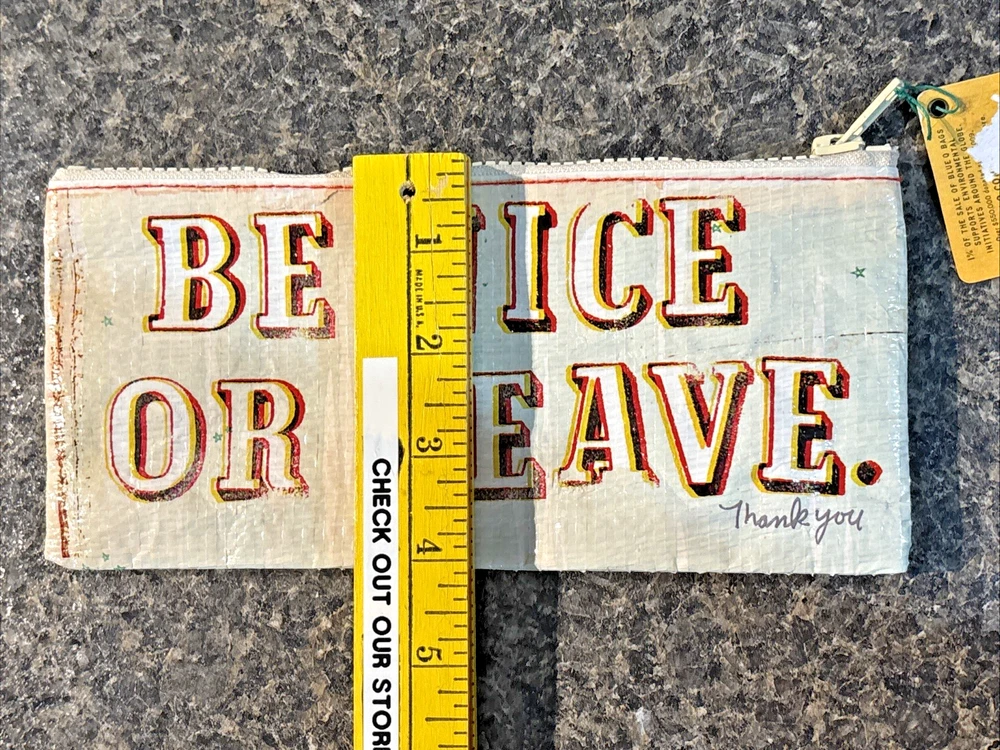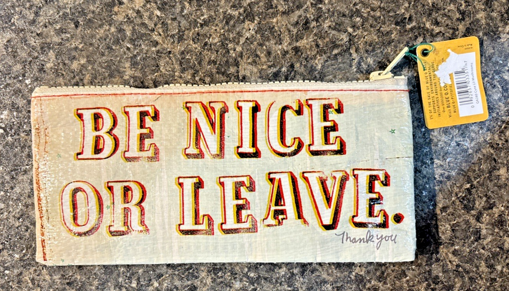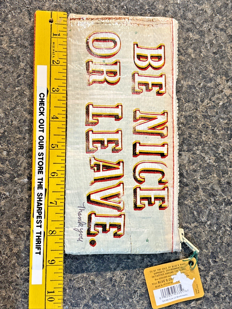 Blue Q Pencil Case Bag Coupon Holder BE NICE OR LEAVE Recycled Material NEW NWT
