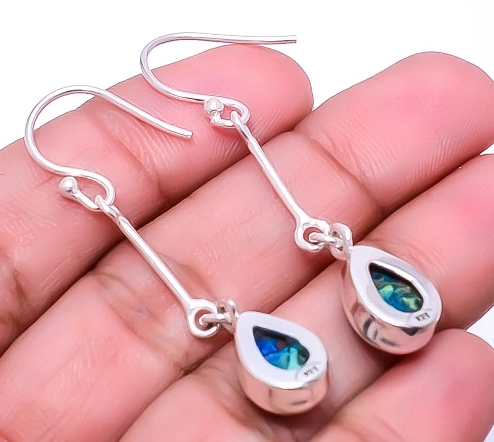 Theme Beauty Main Stone Depth As Seen in Picture Main Stone Length As Seen in Picture Main Stone Width As Seen in Picture Seller Warranty Yes Shape As Seen in Picture SKU E_9326_98_1 Main Stone Cut Type Cabochon Main Stone Size 12X8Mm Antique Yes Handmade Yes Type Earring Style Drop/Dangle Metal Sterling Silver Metal Purity 925 Parts Per 1000 Base Metal Sterling Silver Total Carat Weight 17.5 Main Stone Rainbow Calsilica Main Stone Creation Lab-Created Main Stone Shape Pear Main Stone Color Blue Main Stone Treatment Lab-Created Material Gemstone, Stone Number of Gemstones 2 Item Length 1.95 Features Engraved, Nickel-Free, Handcrafted Ear Area Lobe Brand Unbranded Country/Region of Manufacture India Country of Origin United States Color As Seen in Picture Diamond Clarity Grade Not Applicable Number of Diamonds As Seen in Picture Item Diameter As Seen in Picture Gemstone Clarity Grade Opaque Diamond Color Grade Not Applicable Customized No Colored Diamond Intensity Not Applicable Certification 100% Genuine Guaranteed Setting Style Bezel Occasion Christmas, Birthday, Anniversary, Engagement, Wedding, Valen Shipping & Handling - Charge - 1st item-5.90 And Additional item-1.90 Handling Time - 1 Days . Delivery Time - 2 TO 3 DAYS. Shipping Service - USPS First Class Package 2 -3 Days. Returns - 1.We offer a 100% Money Back Guarantee minus shipping for 30 days after receiving the Item / item's. 2..The item must not be altered or damaged in any way shape or form. 3.Upon receiving these items your payment will be refunded. 4.Email us for return instructions before sending merchandise back. 5.Please allow up to 1 business day for all returns to receive credit. 6.Sizing does not affect the return policy. Payment - We accept PayPal for Payment ,should made with in 14 days once buying or winning done , in case of late information expected .