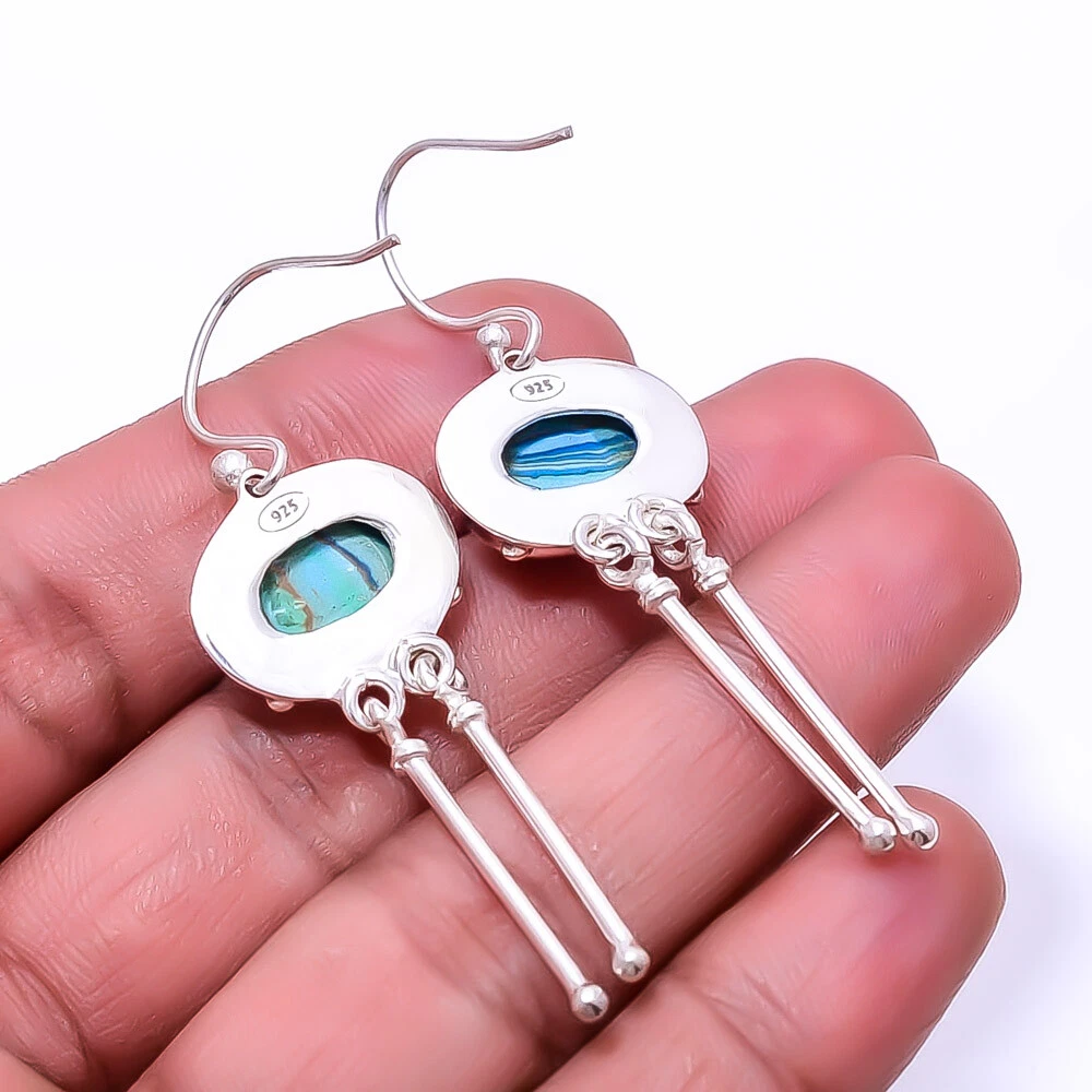 Theme Beauty Main Stone Depth As Seen in Picture Main Stone Length As Seen in Picture Main Stone Width As Seen in Picture Seller Warranty Yes Shape As Seen in Picture SKU E_9289_179_19 Main Stone Cut Type Cabochon Antique Yes Handmade Yes Type Earring Style Drop/Dangle Metal Sterling Silver Metal Purity 925 Parts Per 1000 Base Metal Sterling Silver Total Carat Weight 33.5 Main Stone Rainbow Calsilica Main Stone Creation Lab-Created Main Stone Color Blue Main Stone Treatment Lab-Created Material Gemstone, Stone Number of Gemstones 2 Item Length 2.22 Features Engraved, Nickel-Free, Handcrafted Ear Area Lobe Brand Unbranded Country/Region of Manufacture India Country of Origin United States Color As Seen in Picture Diamond Clarity Grade Not Applicable Number of Diamonds As Seen in Picture Item Diameter As Seen in Picture Gemstone Clarity Grade Opaque Diamond Color Grade Not Applicable Customized No Colored Diamond Intensity Not Applicable Certification 100% Genuine Guaranteed Setting Style Bezel Occasion Christmas, Birthday, Anniversary, Engagement, Wedding, Valen Shipping & Handling - Charge - 1st item-5.90 And Additional item-1.90 Handling Time - 1 Days . Delivery Time - 2 TO 3 DAYS. Shipping Service - USPS First Class Package 2 -3 Days. Returns - 1.We offer a 100% Money Back Guarantee minus shipping for 30 days after receiving the Item / item's. 2..The item must not be altered or damaged in any way shape or form. 3.Upon receiving these items your payment will be refunded. 4.Email us for return instructions before sending merchandise back. 5.Please allow up to 1 business day for all returns to receive credit. 6.Sizing does not affect the return policy. Payment - We accept PayPal for Payment ,should made with in 14 days once buying or winning done , in case of late information expected .
