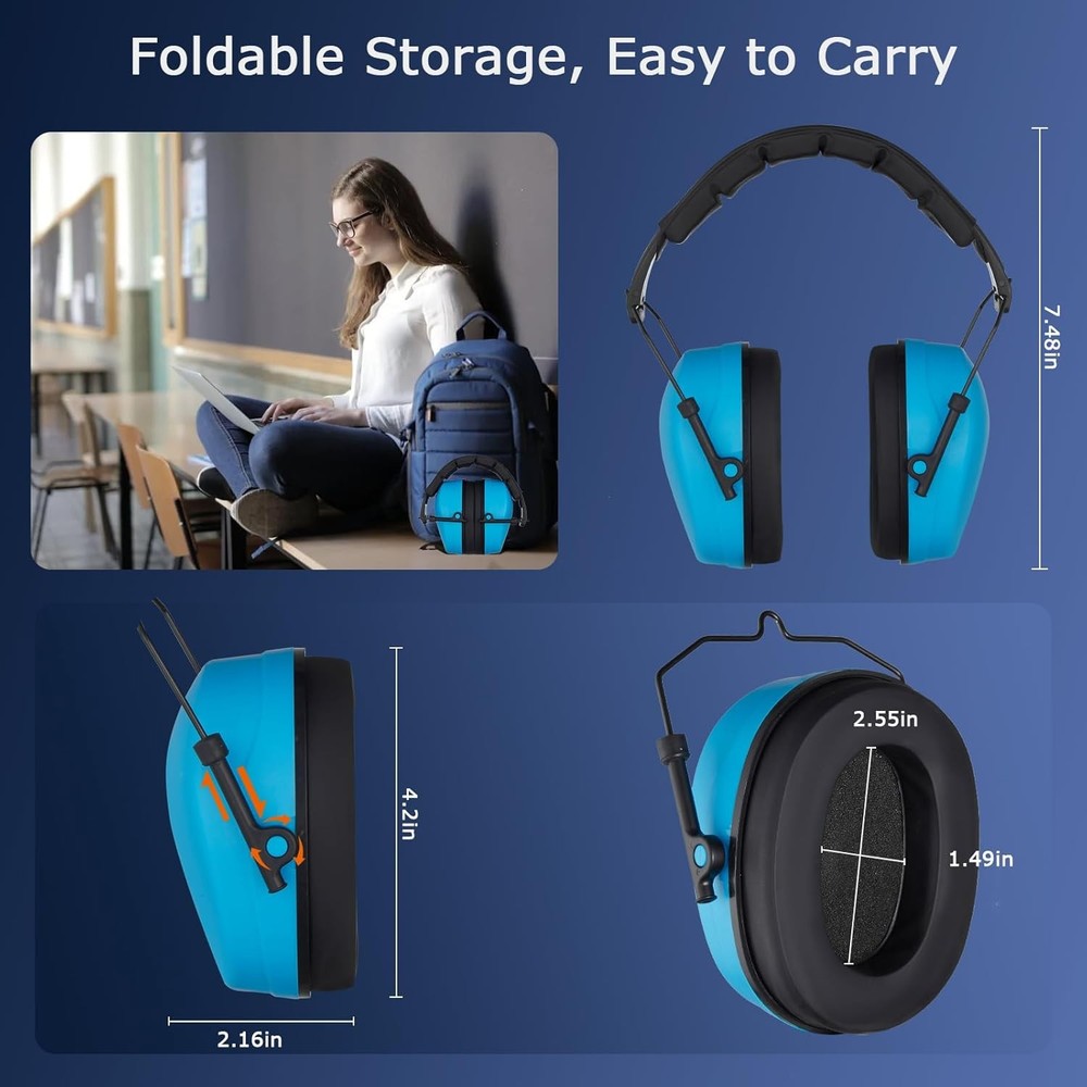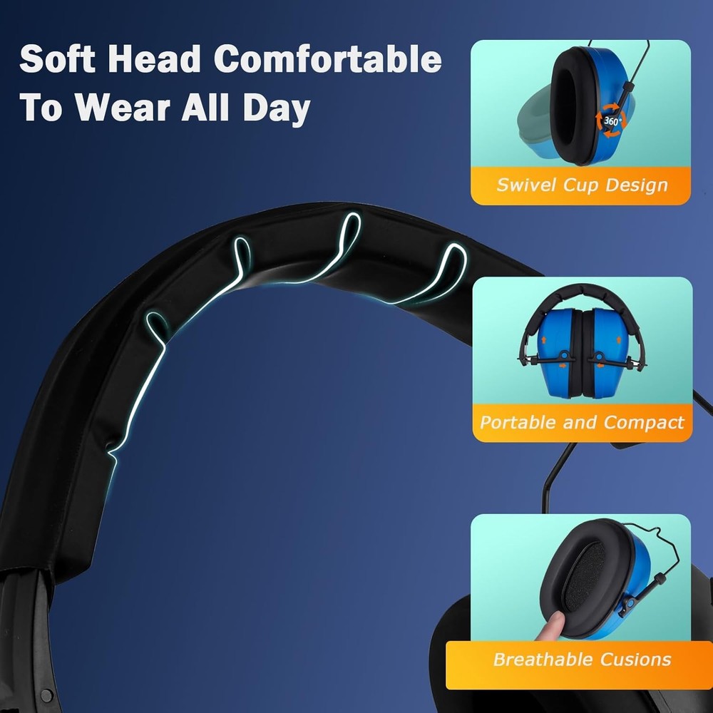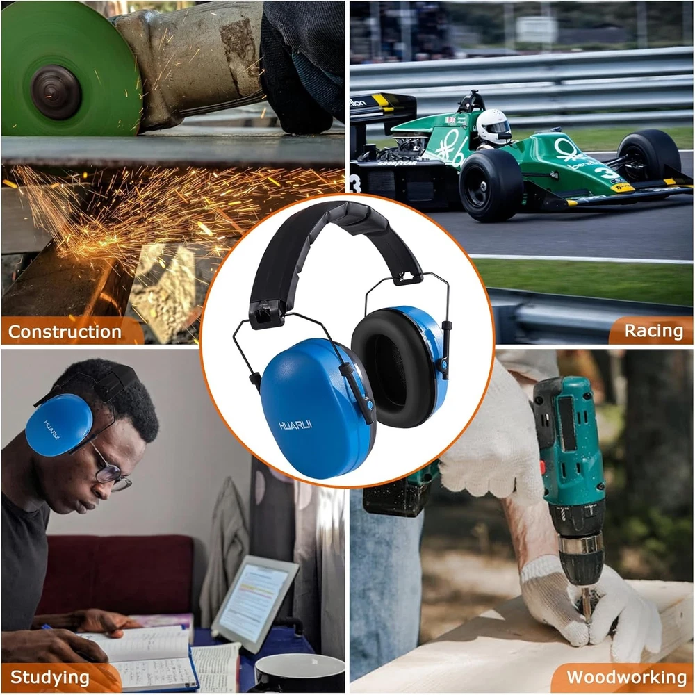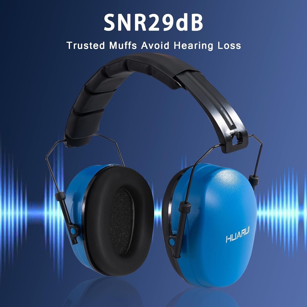 Safety Earmuffs for Ear Protection SNR 29 dB Noise Cancelling muff Blue Product Details Product Dimensions : 11 x 4 x 7 inches; 11.2 ounces Department : Unisex Adult Manufacturer : HUARUI loves festival activities, who loves handmaking, who loves sports events, or someone who likes to jet off a lot a year. Consider earmuffs as a Christmas present. Not only are they an original gift, but they also aid concentration, help have a better rest on long-hColor: Dark GreenFeatures:Soft Ear CushionHUARUI hearing protection ear muffs fits comfortably around ears and block harmful noise. Kindly note: It may be a little tight when you wear it for the first time, the tight seal is for better noise reduction effect.Ergonomic and Padded HeadbandErgonomically designed head strap provides extra padding for maximum comfort, stays put and rests on your head, minimizes pressure over your head. This will be your next noise-cancelling safety earmuffs.Adjustable DesignSliding the steel wire part between the bracket that holds the ear muff and the headband, you can adjust the height to fit your head size. Preferred protective earmuffs for blocking out more noise and focusing on what you like.360° Rotatable Ear CupsThe ear cups are flexible and can be freely rotated to fit snugly around your ears, you can adjust it to suit your face shape and find the perfect fit, more comfortable to wear and convenient to store when not in use.Description:Noise reduction ear muffs have 21dB NRR and do a great/decent job of reducing noise caused by Shootings, Machining ,Woodworking, Large crowds, Gardening, Fireworks, and Household tools ,other troublesome noise.Specification:Material: ABS Package Weight: 275g /9.7oz PackageSize:14.8*10*13.3cm/5.82*3.93*5.23inch Package List:1 * Ear MuffsPoints for Usage:-Check cushions for damage regularly. Once the cushions became hard or damaged should be replaced immediately.-Make sure to get as little hair as possible between the ear cushion and the head.