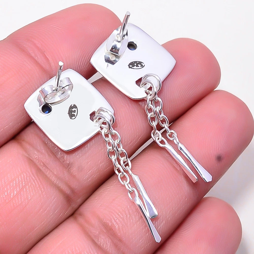 Main Stone Depth: As Seen in Picture Total-weight-of-Jewelry: 4.5 grams Occasion: Christmas, Birthday, Anniversary, Engagement, Wedding, Valen Ear Area: Lobe Country/Region of Manufacture: India Item Diameter: Unknown Shape: As Seen in Picture Item Length: 1.72" Signed: Yes Main Stone Length: As Seen in Picture Vintage: As Seen in Picture SKU: E_10242_1005_6 Metal Purity: 925 Parts Per 1000 Features: Unknown Main Stone Creation: Simulated Handmade: Yes Main Stone Color: Same As Picture Color: Same As Picture Style: Drop/Dangle Cut Grade: Unknown Polish: Excellent Antique: Same As Picture Number of Gemstones: 2 Main Stone: Blue Sapphire Main Stone Width: As Seen in Picture Material: Gemstone Seller Warranty: Yes Theme: Beauty Type: Earring Wholesale: Yes Main Stone Treatment: Simulated Setting Style: collet setting Customized: No Brand: Unbranded Country of Origin: United States Base Metal: Sterling Silver Main Stone Shape: Same As Picture Metal: Sterling Silver gtin13: does not apply UPC: does not apply