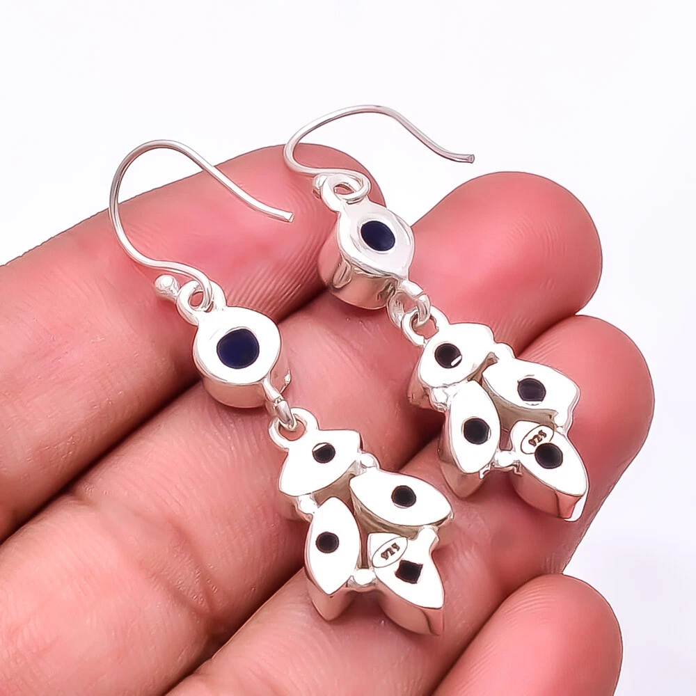 Total-weight-of-Jewelry 7.7 grams Main Stone Depth As Seen in Picture Main Stone Length As Seen in Picture Main Stone Width As Seen in Picture Seller Warranty Yes Handmade Yes Shape As Seen in Picture Signed Yes Vintage As Seen in Picture Wholesale Yes Occasion Christmas, Birthday, Anniversary, Engagement, Wedding, Valen SKU E_8004_334_16 Main Stone Size 8X4 Mm Polish Excellent Unit Quantity 1 Unit Type Unit Type Earring Style Drop/Dangle Main Stone Blue Sapphire Main Stone Creation Lab-Created Main Stone Color Same As Picture Main Stone Shape Same As Picture Main Stone Treatment Lab-Created Brand Unbranded Metal Sterling Silver Setting Style collet setting Number of Gemstones 10 Metal Purity 925 Parts Per 1000 Item Length 2.03" Item Diameter Unknown Features Unknown Ear Area Lobe Cut Grade Unknown Customized No Country/Region of Manufacture India Country of Origin United States Closure Wire Hook Base Metal Sterling Silver Material Gemstone Color Same As Picture Theme Beauty Antique Same As Picture Shipping & Handling - Charge - 1st item-5.90 And Additional item-1.90 Handling Time - 1 Days . Delivery Time - 2 TO 3 DAYS. Shipping Service - USPS First Class Package 2 -3 Days. Returns - 1.We offer a 100% Money Back Guarantee minus shipping for 30 days after receiving the Item / item's. 2..The item must not be altered or damaged in any way shape or form. 3.Upon receiving these items your payment will be refunded. 4.Email us for return instructions before sending merchandise back. 5.Please allow up to 1 business day for all returns to receive credit. 6.Sizing does not affect the return policy. Payment - We accept PayPal for Payment ,should made with in 14 days once buying or winning done , in case of late information expected .