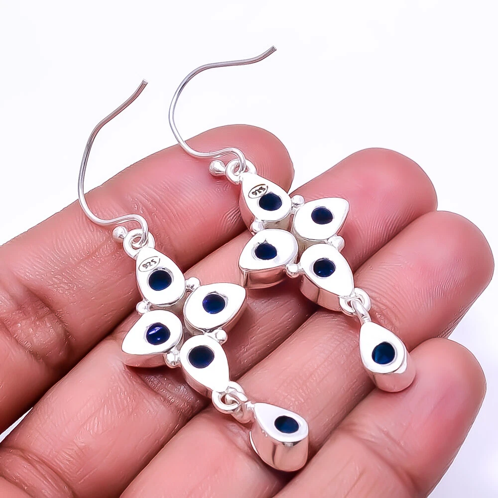 Total-weight-of-Jewelry 7.9 grams Main Stone Depth As Seen in Picture Main Stone Length As Seen in Picture Main Stone Width As Seen in Picture Seller Warranty Yes Handmade Yes Shape As Seen in Picture Signed Yes Vintage As Seen in Picture Wholesale Yes Occasion Christmas, Birthday, Anniversary, Engagement, Wedding, Valen SKU E_8027_360_27 Main Stone Size 8X5 Mm Polish Excellent Unit Quantity 1 Unit Type Unit Type Earring Style Drop/Dangle Main Stone Blue Sapphire Main Stone Creation Lab-Created Main Stone Color Same As Picture Main Stone Shape Same As Picture Main Stone Treatment Lab-Created Brand Unbranded Metal Sterling Silver Setting Style collet setting Number of Gemstones 10 Metal Purity 925 Parts Per 1000 Item Length 2.15" Item Diameter Unknown Features Unknown Ear Area Lobe Cut Grade Unknown Customized No Country/Region of Manufacture India Country of Origin United States Closure Wire Hook Base Metal Sterling Silver Material Gemstone Color Same As Picture Theme Beauty Antique Same As Picture Shipping & Handling - Charge - 1st item-5.90 And Additional item-1.90 Handling Time - 1 Days . Delivery Time - 2 TO 3 DAYS. Shipping Service - USPS First Class Package 2 -3 Days. Returns - 1.We offer a 100% Money Back Guarantee minus shipping for 30 days after receiving the Item / item's. 2..The item must not be altered or damaged in any way shape or form. 3.Upon receiving these items your payment will be refunded. 4.Email us for return instructions before sending merchandise back. 5.Please allow up to 1 business day for all returns to receive credit. 6.Sizing does not affect the return policy. Payment - We accept PayPal for Payment ,should made with in 14 days once buying or winning done , in case of late information expected .