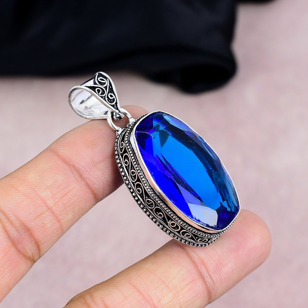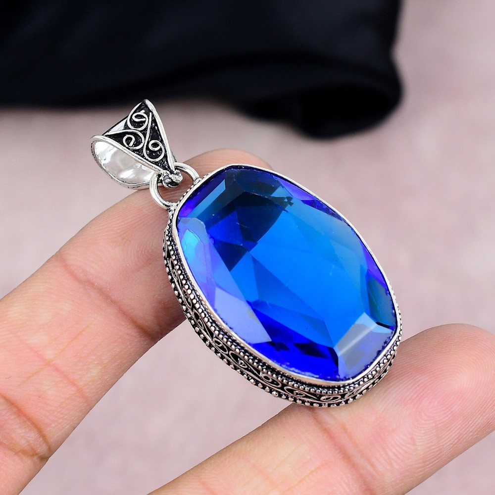 Main Stone Shape:OvalCountry/Region of Manufacture:IndiaColor:SilverNumber of Diamonds:N/AType:PendantCollection:HandmadeFeatures:HandmadeNumber of Gemstones:1Main Stone Treatment:Not EnhancedCountry of Origin:IndiaPendant/Locket Type:Same As PictureColored Diamond Intensity:N/AStyle:PendantMetal:Sterling SilverChain Type:N/AClosure:Same As PictureSetting Style:BezelSecondary Stone:N/AOccasion:Anniversary, Birthday, Christening, Christmas, Engagement, Father's Day, Graduation, Mother's Day, Valentine's Day, WeddingNecklace Length:5.5"Main Stone:Blue SapphireMain Stone Color:BlueCertification:N/AMain Stone Creation:Lab-CreatedBase Metal:Sterling SilverPendant Shape:Same As PictureCut Grade:N/ATotal Carat Weight:10 carat and aboveDiamond Clarity Grade:N/ATheme:Beauty, Bohemian, Ethnic, Halloween, Love, NatureDiamond Color Grade:N/ABrand:HandmadeMetal Purity:925Material:Gemstone