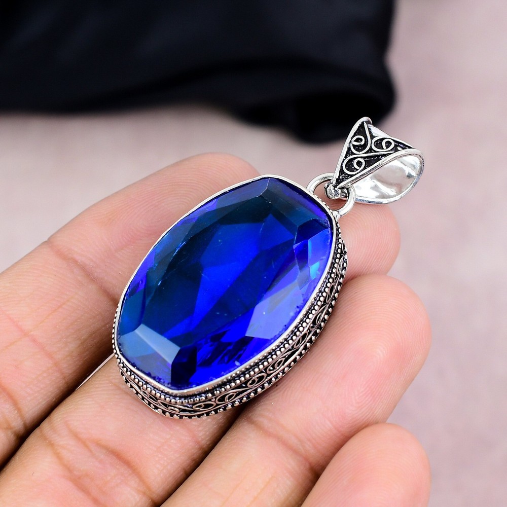 $ 7.23Lab-Created Blue Sapphire Sterling Silver Pendant Handmade Jewelry