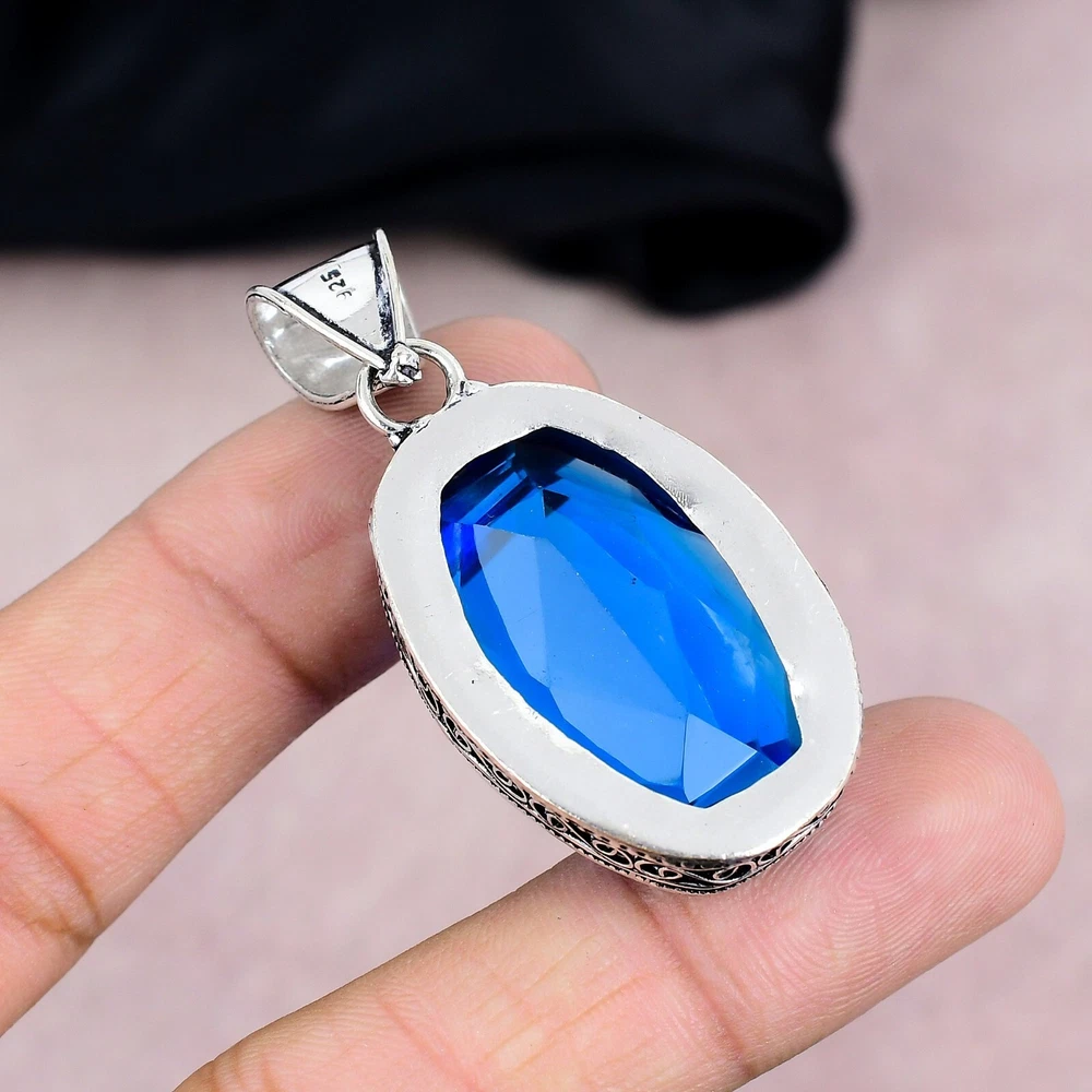 Blue Sapphire Sterling Silver Pendant Handmade Jewelry Gift for Women