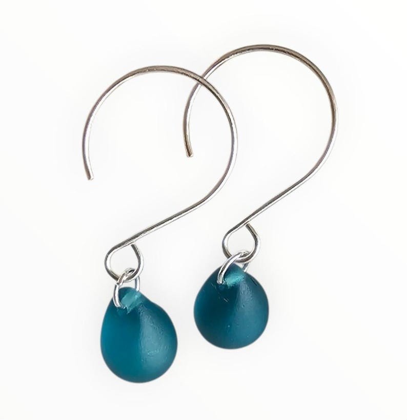 Featuring smooth, frosted sea glass in a stunning teardrop shape, paired with sleek sterling silver ear wires, these earrings are the perfect blend of casual elegance and timeless style. ✨ FEATURES Genuine eco-friendly sea glass with a natural frosted finish Teardrop-shaped sea glass in rich dark teal green High-quality .925 sterling silver ear wires — lightweight and comfortable Perfect for everyday wear or special occasions 🌊 ABOUT THE SEA GLASS Our sea glass is carefully cultured to resemble authentic ocean-tumbled beach glass, offering uniform shape and size for a polished look. Each piece reflects the calming essence of the sea, making these earrings a beautiful reminder of nature’s tranquil beauty. 📏 SIZE & MATERIALS Sea glass teardrop size: Approximately 12-15mm (varies slightly) Ear wires: Solid .925 sterling silver Lightweight and easy to wear all day long