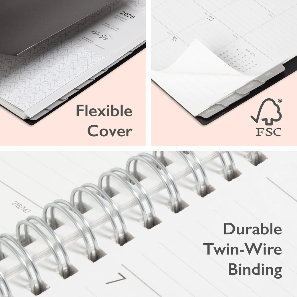 2025 Weekly and Monthly Planner Calendar, January - December, 8.5" x 11", Flexible Cover, Laminated Tabs, Wirebound, Storage Pocket, Enterprise January 2025 - December 2025 stylish day planner with 12 months of monthly and weekly pages for easy year-round planning; 6 additional monthly pages (July 2024 - December 2024) are included Monthly view pages contain previous and next month reference calendars for long-term planning, and a notes section for important projects; Major holidays listed, elapsed and remaining days noted Weekly view pages offer ample lined writing space for more detailed planning, allowing you to keep track of your appointments, reminders, ideas and to-do lists every day of the week Yearly calendar planner includes a convenient list of holidays, reference calendars, contacts pages and extra notes pages to accommodate your scheduling needs and keep you organized Printed on FSC-certified, high quality, white paper for clean writing space, with premium quality covers in a professional design and durable, coated tabs that withstand constant use throughout the year Plan your year in style with the minimalistic design and classic colors of the 2025 calendar year Enterprise collection. This stylish weekly and monthly planner will keep you organized everywhere you go. Simple page designs add a touch of sophistication and offer plenty of room for all of your important information. Designed with practicality and ease of use in mind, this professional agenda's monthly calendar tabs allow for easy access to each month’s plans while weekly views offer ample writing space for detailing each day. Paper sourced from responsibly managed forests provides clean writing space for jotting down your appointments, to-dos and reminders. Use this dated planner to keep track of your appointments, and to write down notes and ideas in one place. Durable coated tabbed dividers are long lasting and make accessing information a breeze. Quality flexible covers and twin-wire binding provide reliable durability for daily use. Stay on track throughout the year with this portable 8.5” x 11” planner dated January 2025 - December 2025. Mix and match with other Enterprise Collection planning products from to organize your daily life. NOTE : To Avoid Any Inconvenience please, Read Product Instructions Very Carefully Before Buying. Thanks Shipping We offer FREE shipping on all orders! We ship within Three business days of payment, usually sooner. We use a selection of shipping services such as UPS, FedEx, USPS etc. We only ship to the lower 48 states, no Alaska/Hawaii, APO/FPO, US Protectorates, Puerto Rico, Virgin Islands (U.S.), or PO Boxes allowed. Local pickups and combined shipping options are not provided at this time. Return You can return a product for up to 30 days from the date you purchased it. Any product you return must be in the same condition you received it and in the original packaging. Please keep the receipt. Payment We accept payment by any of the following methods: PayPal Please pay as soon as possible after winning an auction, as that will allow us to post your item to you sooner! Feedback Customer satisfaction is very important to us. If you have any problem with your order, please contact us and we will do our best to make you satisfied. Contact Us If you have any queries, please contact us via ebay. We usually respond within 24 hours on weekdays. Please visit our eBay store to check out other items for sale! Thank you for shopping at our store.