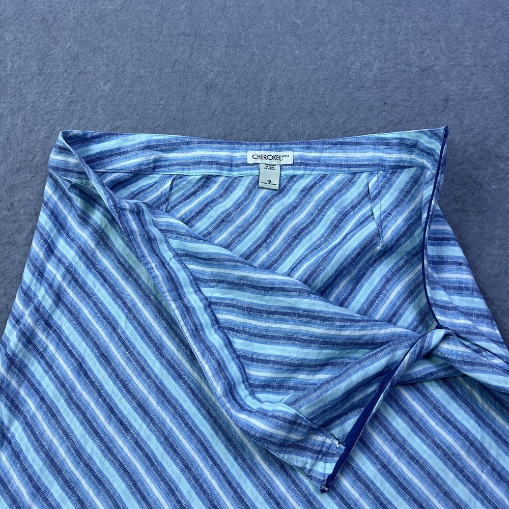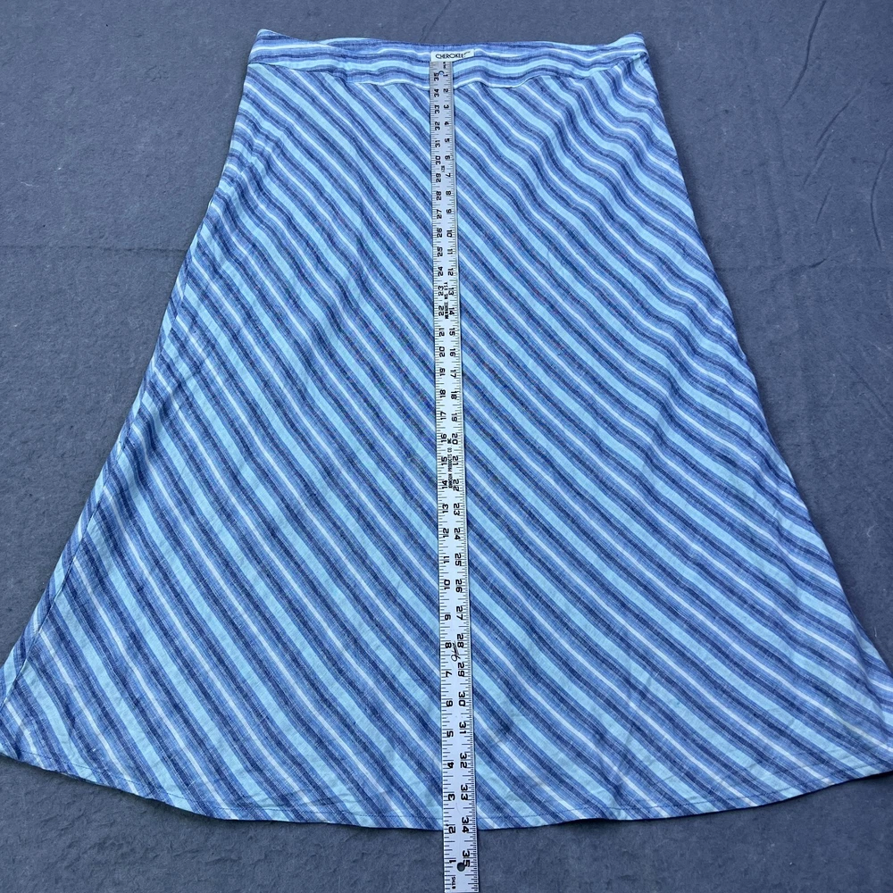 $ 6.84Blue Stretch Denim Midi Skirt with Embroidered Detail Raw Hem UK14 L28