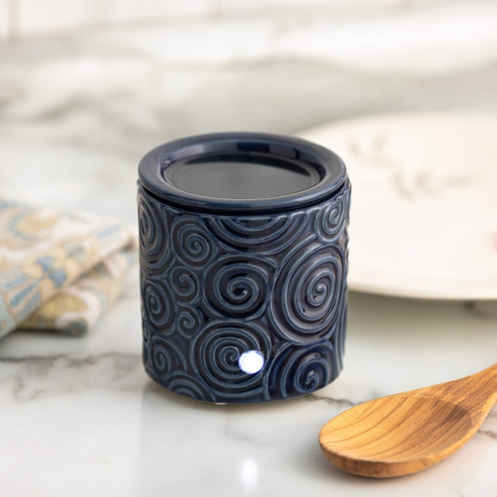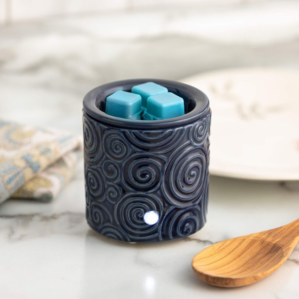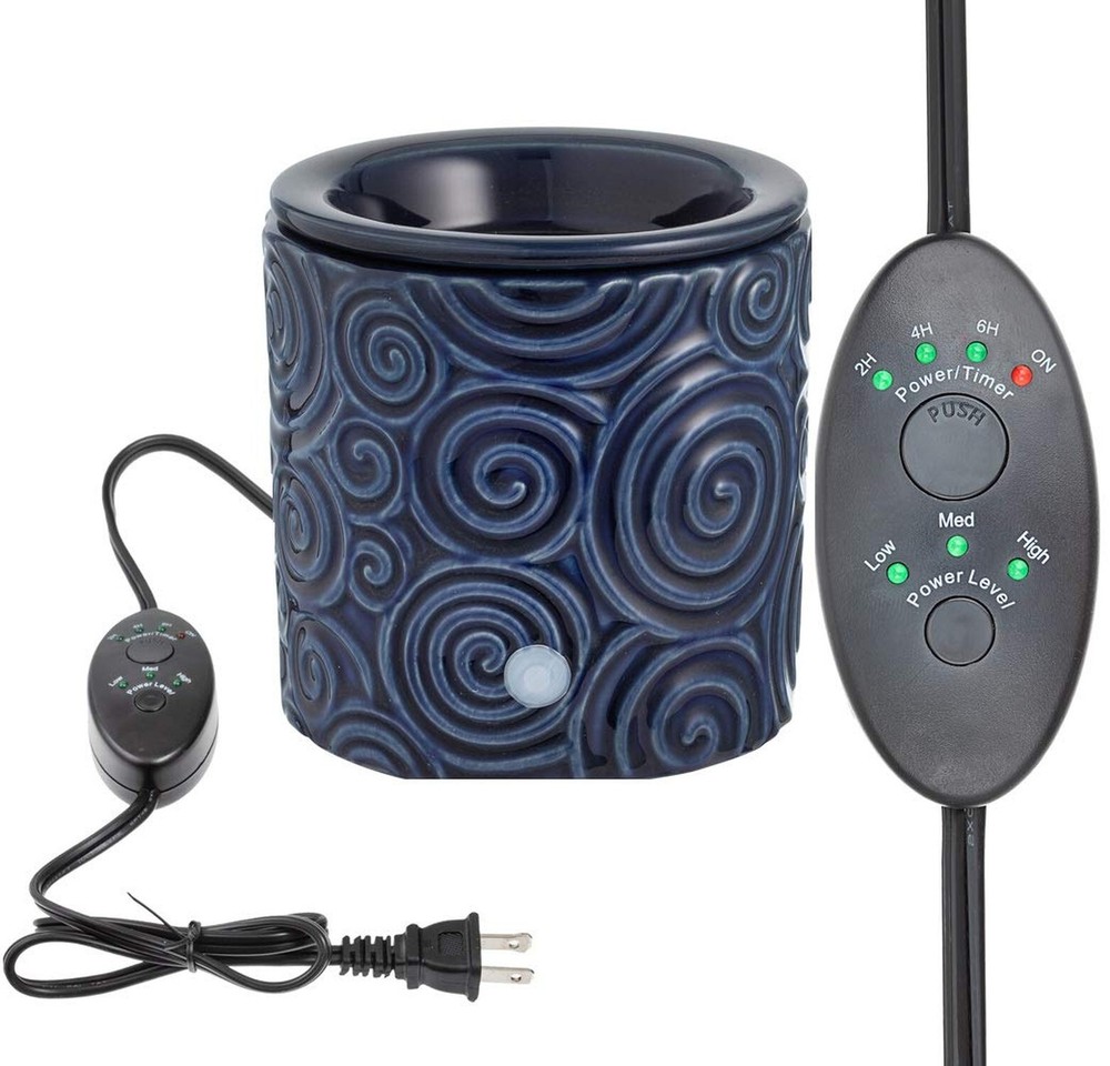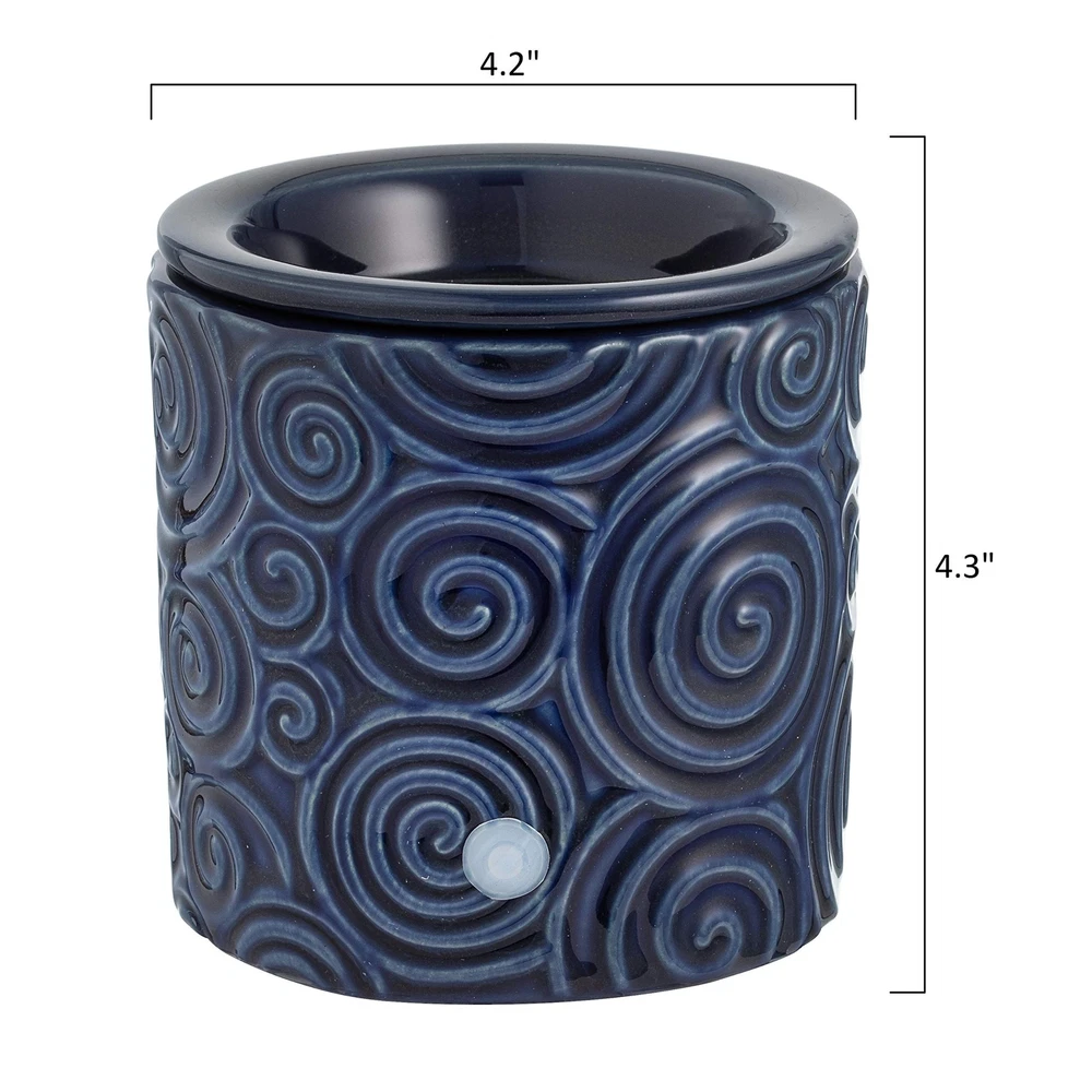 Blue Swirl Ceramic Electric Candle Warmer with Auto Safety Timer & Plug